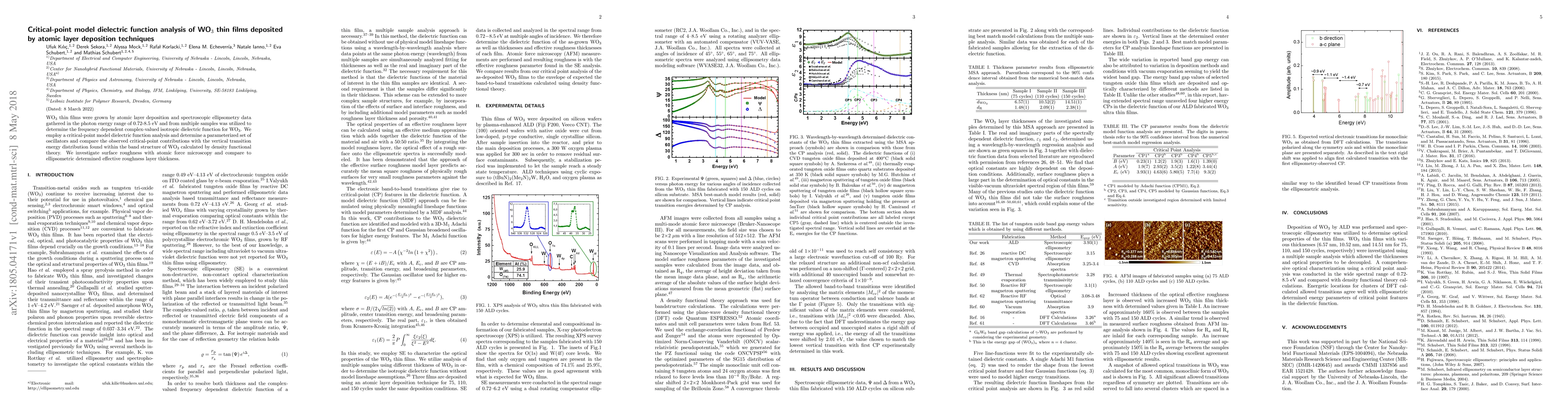 Researchers studied WO3 thin films grown by atomic layer deposition and analyzed their dielectric function using a critical-point model, comparing it to density functional theory calculations. The study aimed to understand the optical properties of WO3 and its surface roughness.