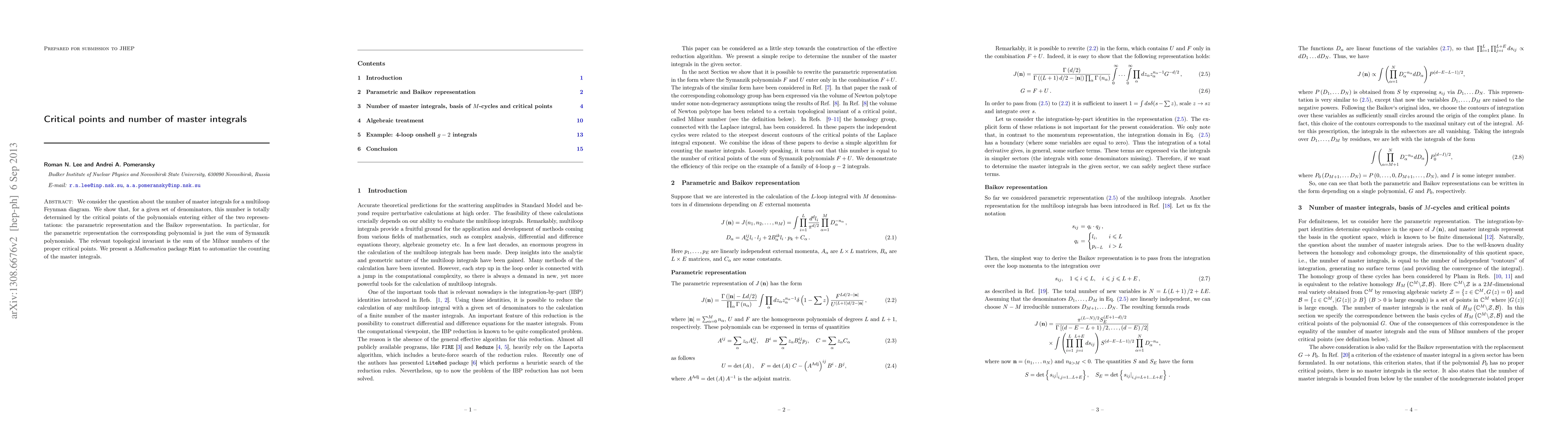 This paper explores the determination of the number of master integrals in multiloop Feynman diagrams, revealing it is dictated by the critical points of the polynomials in parametric and Baikov representations. A Mathematica package, Mint, is introduced to automate this counting process.