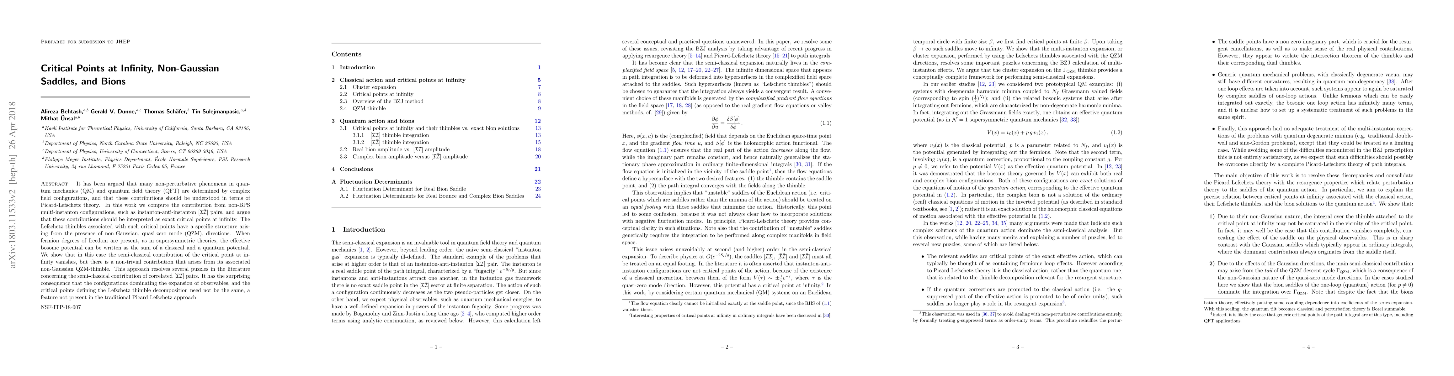 It has been argued that many non-perturbative phenomena in quantum mechanics (QM) and quantum field theory (QFT) are determined by complex field configurations, and that these contributions should be understood in terms of of Picard-Lefschetz theory. In this work we compute the contribution from non-BPS multi-instanton configurations, such as instanton-anti-instanton $[{I}\bar{I}]$ pairs, and argue that these contributions should be interpreted as exact critical points at infinity. The Lefschetz thimbles associated with such critical points have a specific structure arising from the presence of non-Gaussian, quasi-zero mode (QZM), directions. When fermion degrees of freedom are present, as in supersymmetric theories, the effective bosonic potential can be written as the sum of a classical and a quantum potential. We show that in this case the semi-classical contribution of the critical point at infinity vanishes, but there is a non-trivial contribution that arises from its associated non-Gaussian QZM-thimble. This approach resolves several puzzles in the literature concerning the semi-classical contribution of correlated $[{I}\bar{I}]$ pairs. It has the surprising consequence that the configurations that dominate the expansion of observables, and the critical points that define the Lefschetz thimble decomposition need not be the same, a feature not present in the traditional Picard-Lefschetz approach.