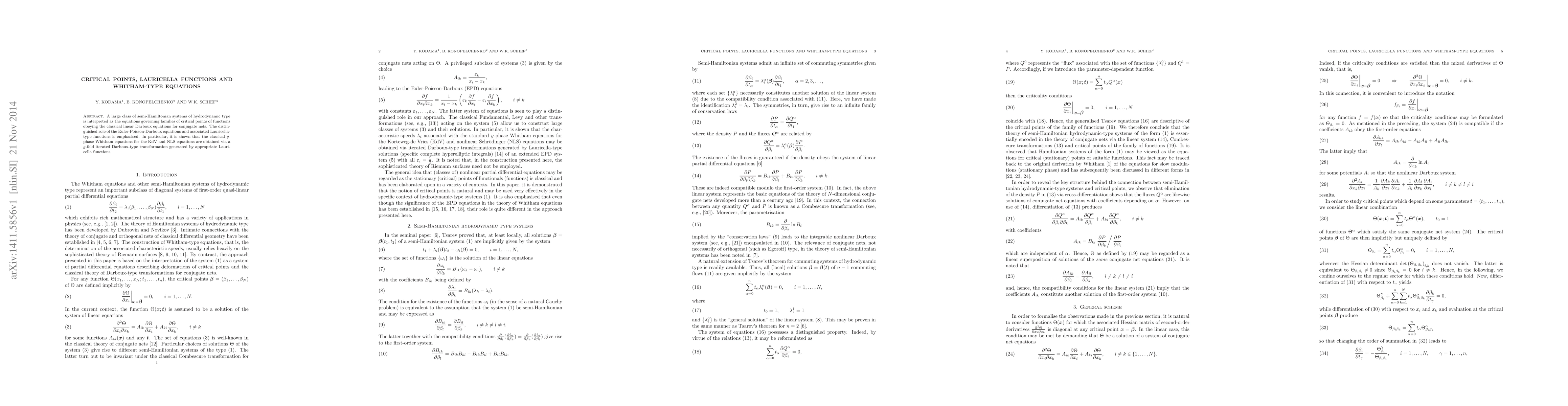 A large class of semi-Hamiltonian systems of hydrodynamic type is interpreted as the equations governing families of critical points of functions obeying the classical linear Darboux equations for conjugate nets.The distinguished role of the Euler-Poisson-Darboux equations and associated Lauricella-type functions is emphasised. In particular, it is shown that the classical g-phase Whitham equations for the KdV and NLS equations are obtained via a g-fold iterated Darboux-type transformation generated by appropriate Lauricella functions.