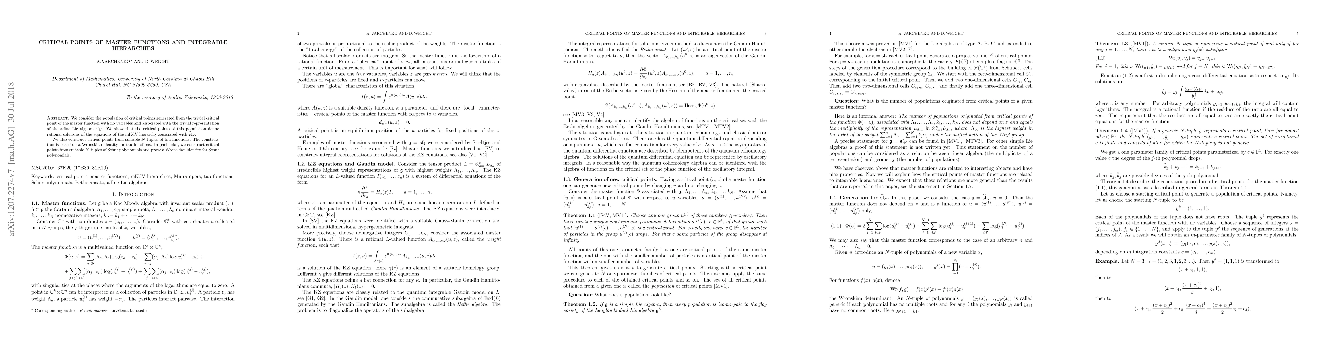 We consider the population of critical points generated from the trivial critical point of the master function with no variables and associated with the trivial representation of the affine Lie algebra $\hat{\frak{sl}}_N$. We show that the critical points of this population define rational solutions of the equations of the mKdV hierarchy associated with $\hat{\frak{sl}}_N$. We also construct critical points from suitable $N$-tuples of tau-functions. The construction is based on a Wronskian identity for tau-functions. In particular, we construct critical points from suitable $N$-tuples of Schur polynomials and prove a Wronskian identity for Schur polynomials.