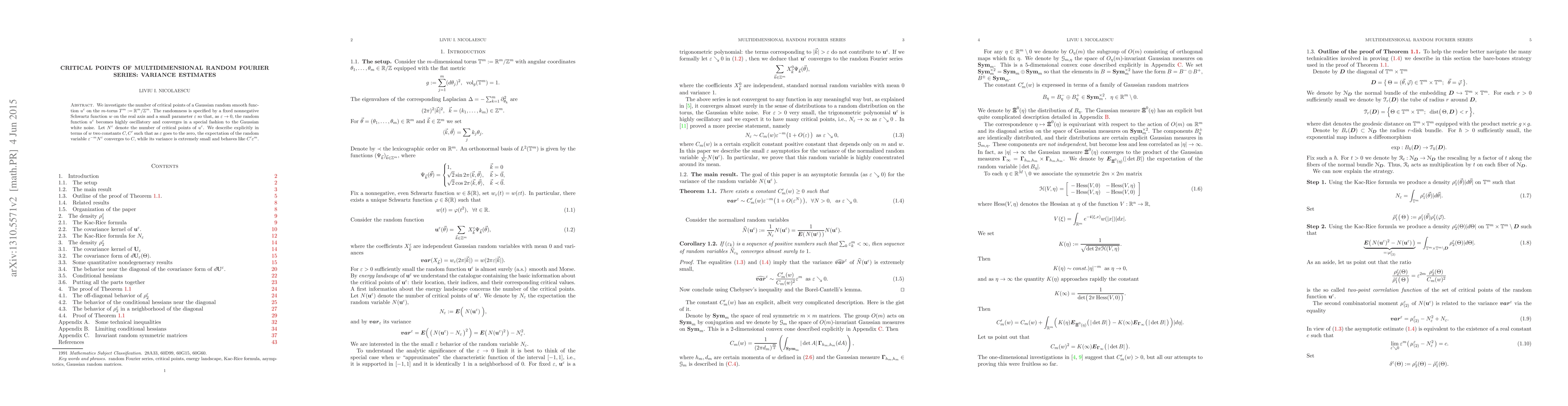A research paper analyzes the behavior of a multidimensional random Fourier series as epsilon approaches zero, finding that its expected number of critical points converges to a constant while its variance behaves like epsilon^m.