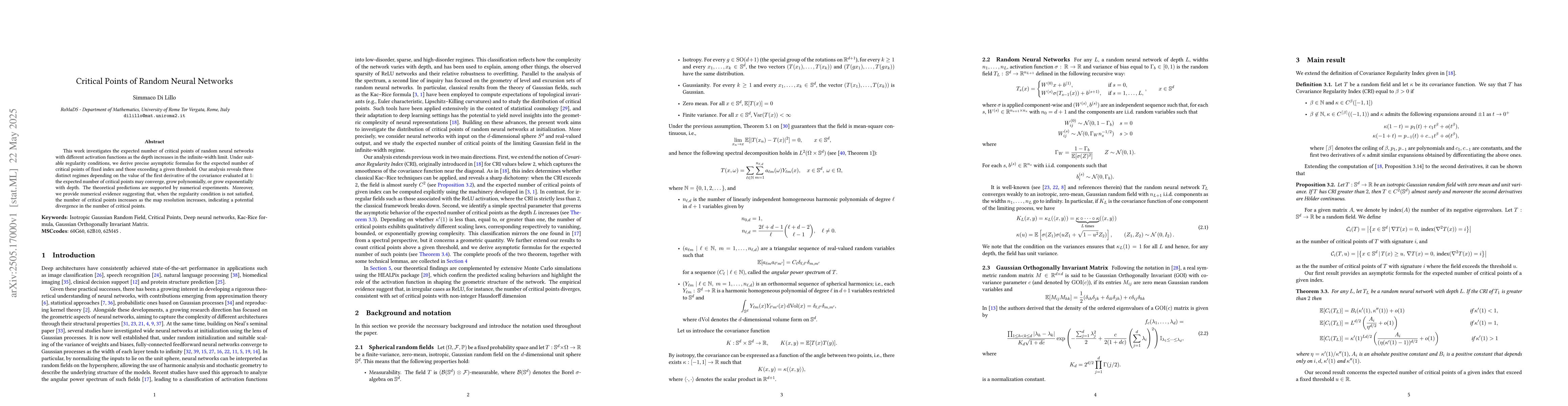 The research derives precise asymptotic formulas for the expected number of critical points of random neural networks with varying activation functions, as depth increases in the infinite-width limit, under regularity conditions.