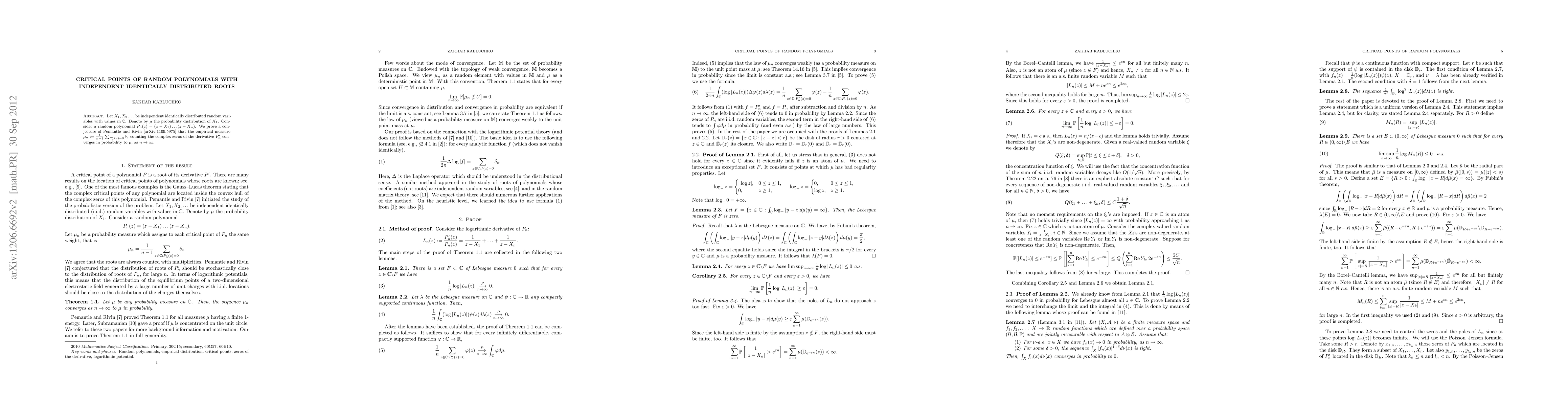 Let $X_1,X_2,...$ be independent identically distributed random variables with values in $\C$. Denote by $\mu$ the probability distribution of $X_1$. Consider a random polynomial $P_n(z)=(z-X_1)...(z-X_n)$. We prove a conjecture of Pemantle and Rivin [arXiv:1109.5975] that the empirical measure $\mu_n:=\frac 1{n-1}\sum_{P_n'(z)=0} \delta_z$ counting the complex zeros of the derivative $P_n'$ converges in probability to $\mu$, as $n\to\infty$.