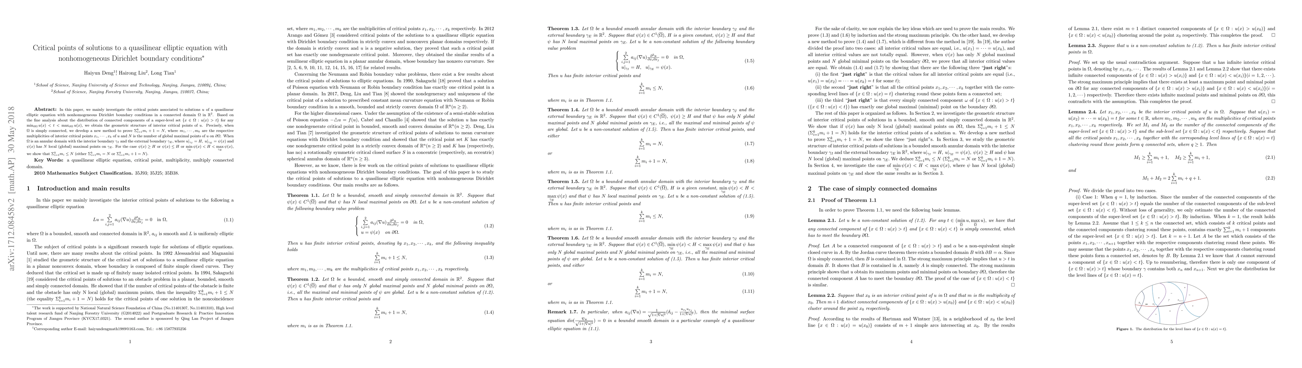 This paper investigates critical points of solutions to a quasilinear elliptic equation with nonhomogeneous Dirichlet boundary conditions in a connected domain. It establishes a geometric structure for interior critical points, proving $\Sigma_{i = 1}^k {{m_i}}+1=N$ for simply connected domains and $\Sigma_{i = 1}^k {{m_i}} \le N$ for annular domains under specific boundary conditions.