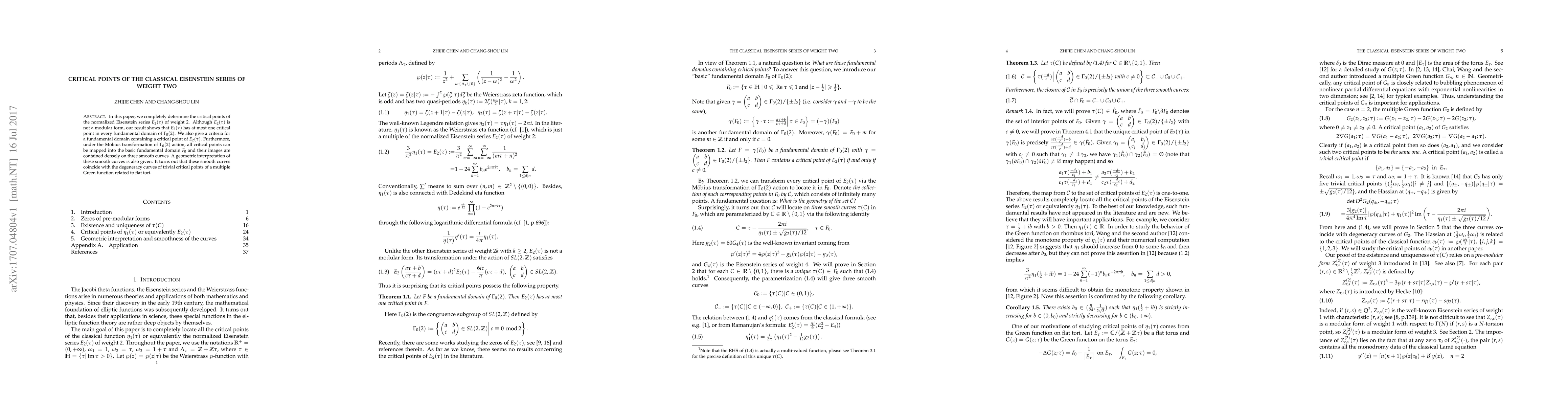 In this paper, we completely determine the critical points of the normalized Eisenstein series $E_2(\tau)$ of weight $2$. Although $E_2(\tau)$ is not a modular form, our result shows that $E_2(\tau)$ has at most one critical point in every fundamental domain of $\Gamma_{0}(2)$. We also give a criteria for a fundamental domain containing a critical point of $E_2(\tau)$. Furthermore, under the M\"obius transformation of $\Gamma_{0}(2)$ action, all critical points can be mapped into the basic fundamental domain $F_0$ and their images are contained densely on three smooth curves. A geometric interpretation of these smooth curves is also given. It turns out that these smooth curves coincide with the degeneracy curves of trivial critical points of a multiple Green function related to flat tori.