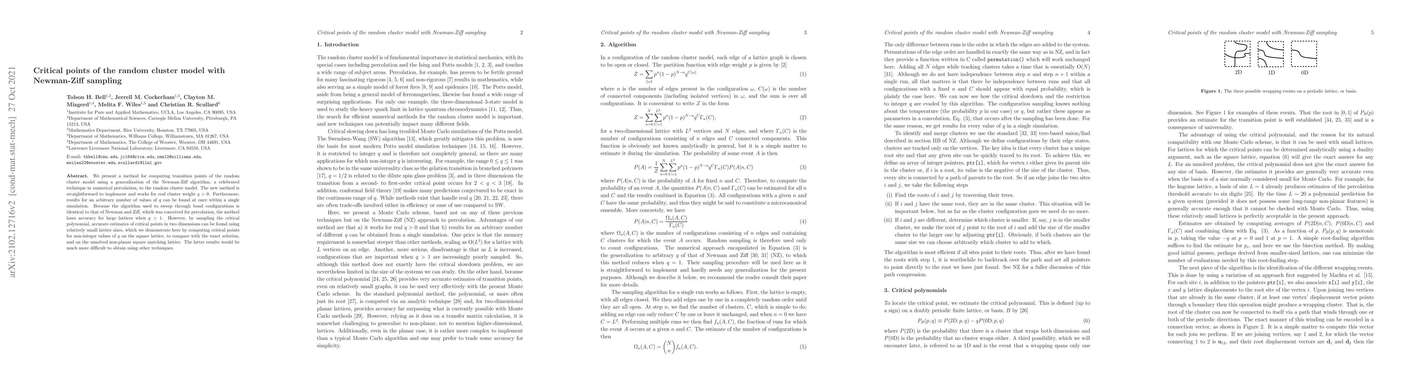 This paper introduces a generalized Newman-Ziff algorithm to compute transition points in the random cluster model, allowing for efficient computation of critical points for various cluster weights $q$. While the method maintains accuracy for small lattice sizes and non-integer $q$, it loses precision for large $q$ and lattices, but still provides accurate estimates for two-dimensional critical points.