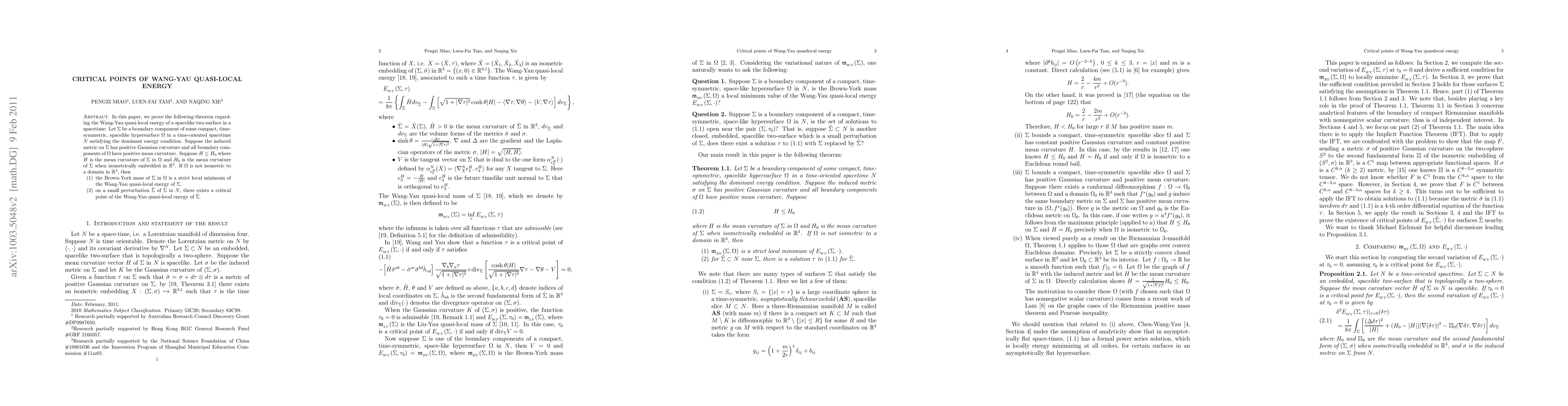 Bowen Zhao, Shing-Tung Yau, Lars Andersson