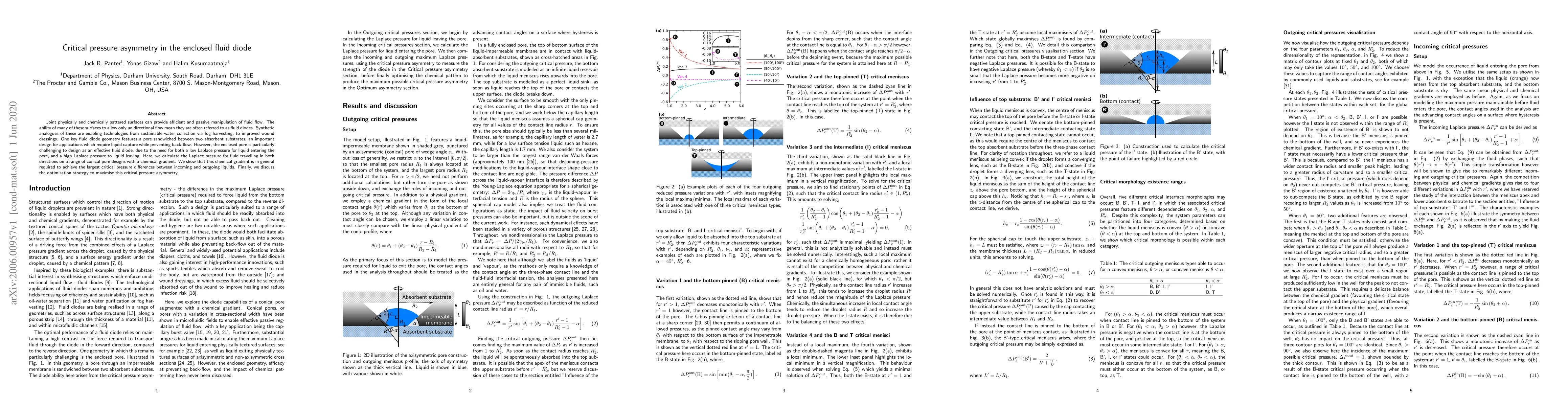 Researchers found that a chemical gradient is necessary to maximize critical pressure asymmetry in fluid diodes with conical pores, which can improve liquid capture and prevent back-flow in applications like sustainable water collection and wound dressings.