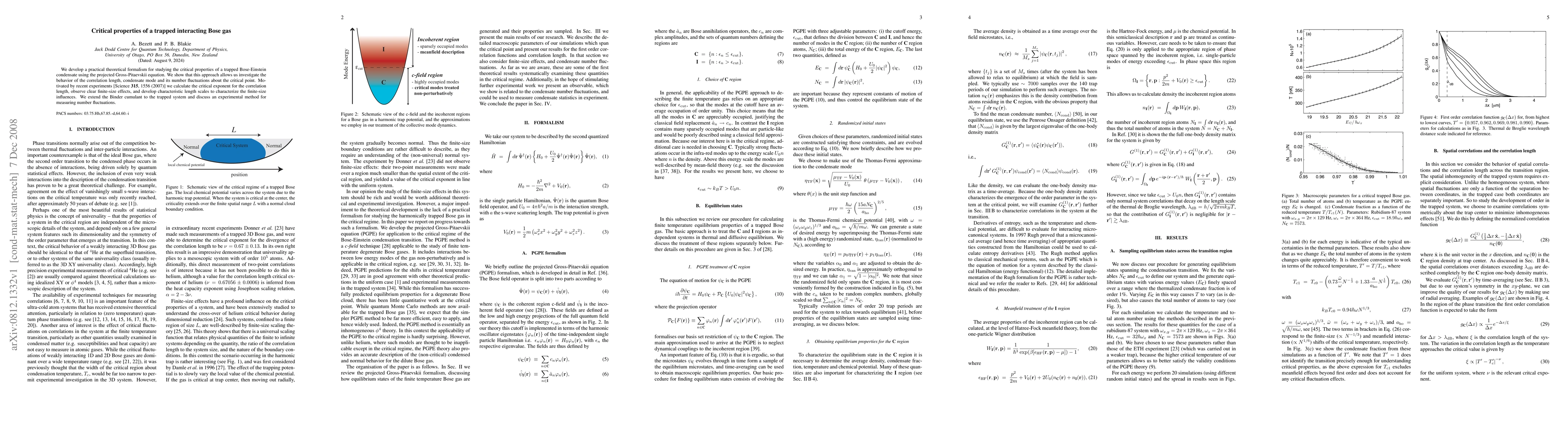 This paper develops a theoretical framework using the projected Gross-Pitaevskii equation to study the critical properties of trapped Bose-Einstein condensates, focusing on correlation length, condensate mode, and number fluctuations near the critical point. It calculates critical exponents and discusses finite-size effects, proposing methods for experimental measurements.