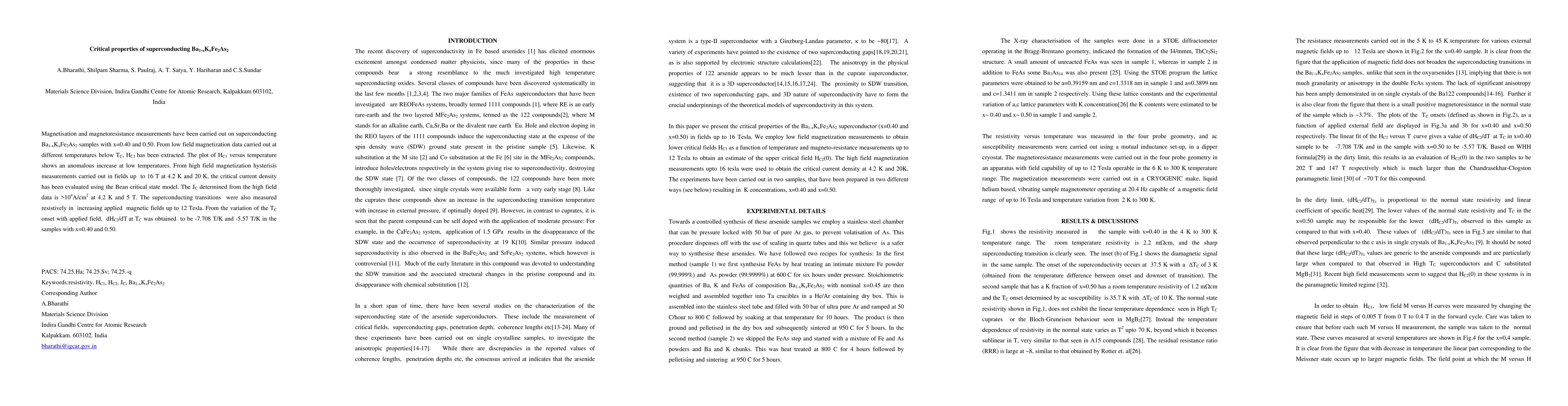 Researchers studied superconducting Ba1-xKxFe2As2 samples to investigate critical properties, finding anomalous behavior in magnetization data and high critical current densities in fields up to 16T.