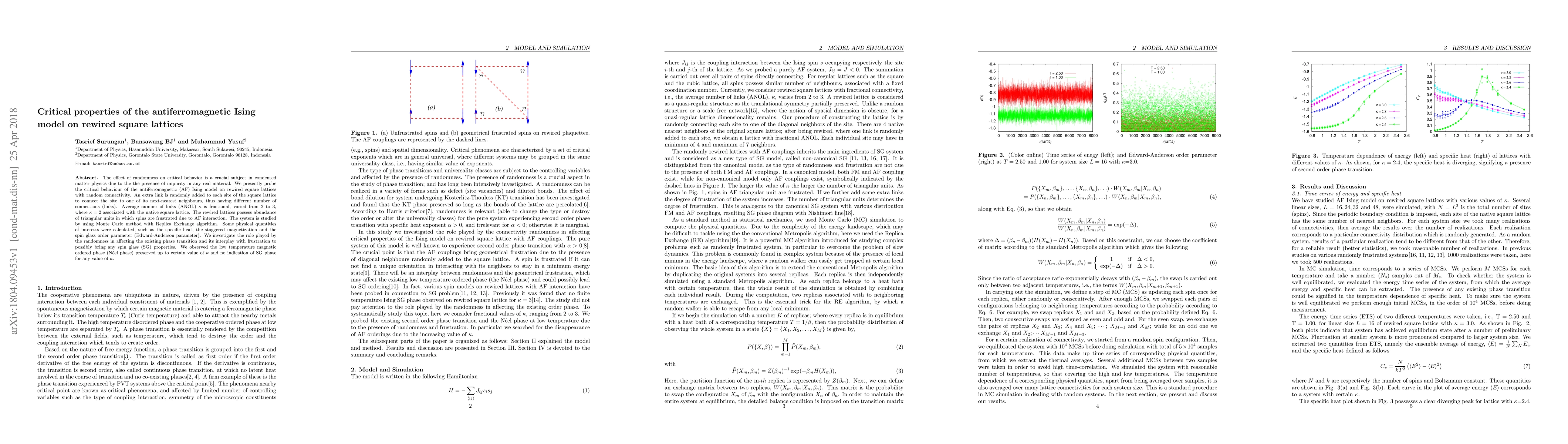 Replica Exchange Monte Carlo method was used to study the AFIsing model on rewired square lattices