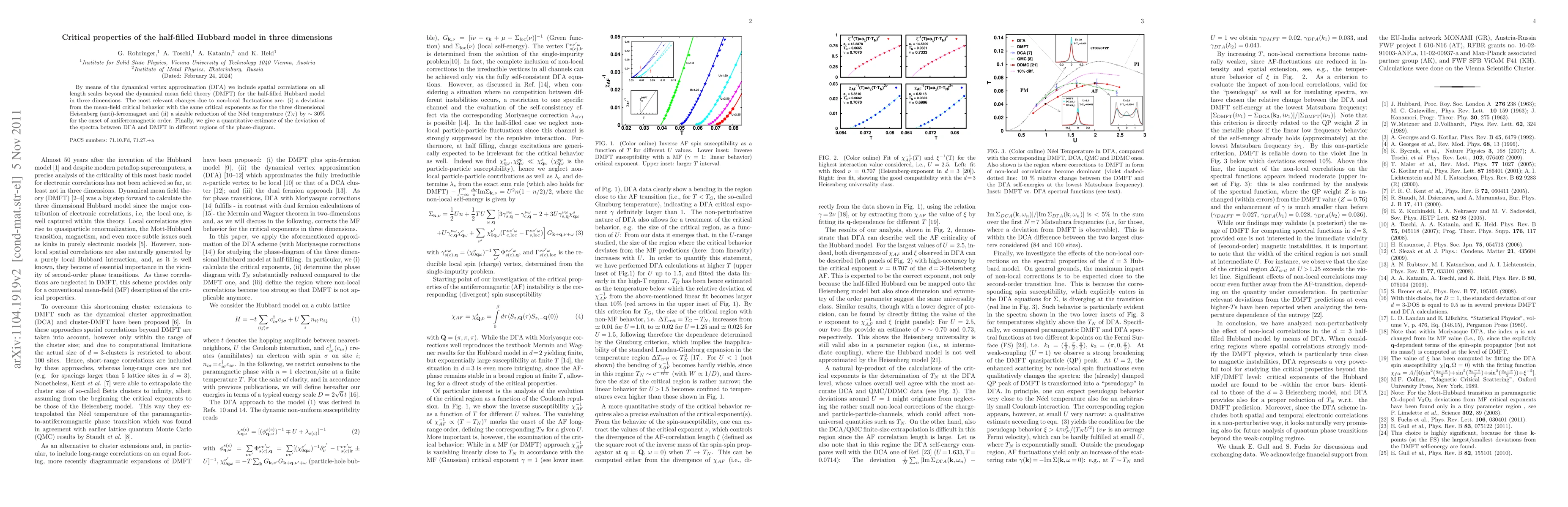 The dynamical vertex approximation (D$\Gamma$A) reveals significant deviations from mean-field critical behavior in the half-filled Hubbard model in three dimensions, including a $\sim 30\%$ reduction in the N\'eel temperature compared to dynamical mean field theory (DMFT). The study provides quantitative estimates of spectral differences between D$\Gamma$A and DMFT across the phase diagram.