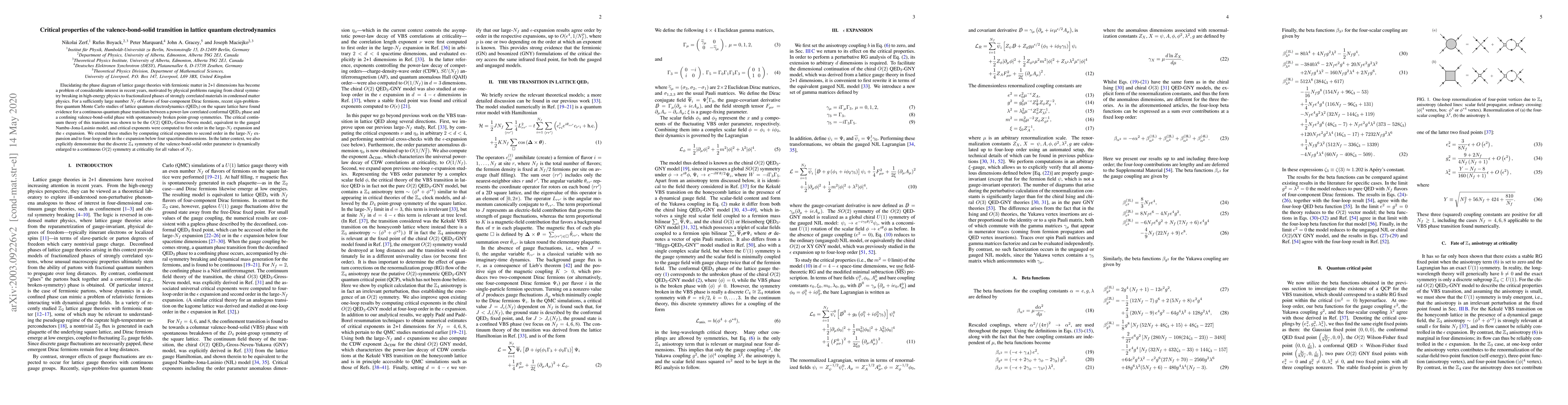 Elucidating the phase diagram of lattice gauge theories with fermionic matter in 2+1 dimensions has become a problem of considerable interest in recent years, motivated by physical problems ranging from chiral symmetry breaking in high-energy physics to fractionalized phases of strongly correlated materials in condensed matter physics. For a sufficiently large number $N_f$ of flavors of four-component Dirac fermions, recent sign-problem-free quantum Monte Carlo studies of lattice quantum electrodynamics (QED$_3$) on the square lattice have found evidence for a continuous quantum phase transition between a power-law correlated conformal QED$_3$ phase and a confining valence-bond-solid phase with spontaneously broken point-group symmetries. The critical continuum theory of this transition was shown to be the $O(2)$ QED$_3$-Gross-Neveu model, equivalent to the gauged Nambu-Jona-Lasinio model, and critical exponents were computed to first order in the large-$N_f$ expansion and the $\epsilon$ expansion. We extend these studies by computing critical exponents to second order in the large-$N_f$ expansion and to four-loop order in the $\epsilon$ expansion below four spacetime dimensions. In the latter context, we also explicitly demonstrate that the discrete $\mathbb{Z}_4$ symmetry of the valence-bond-solid order parameter is dynamically enlarged to a continuous $O(2)$ symmetry at criticality for all values of $N_f$.
