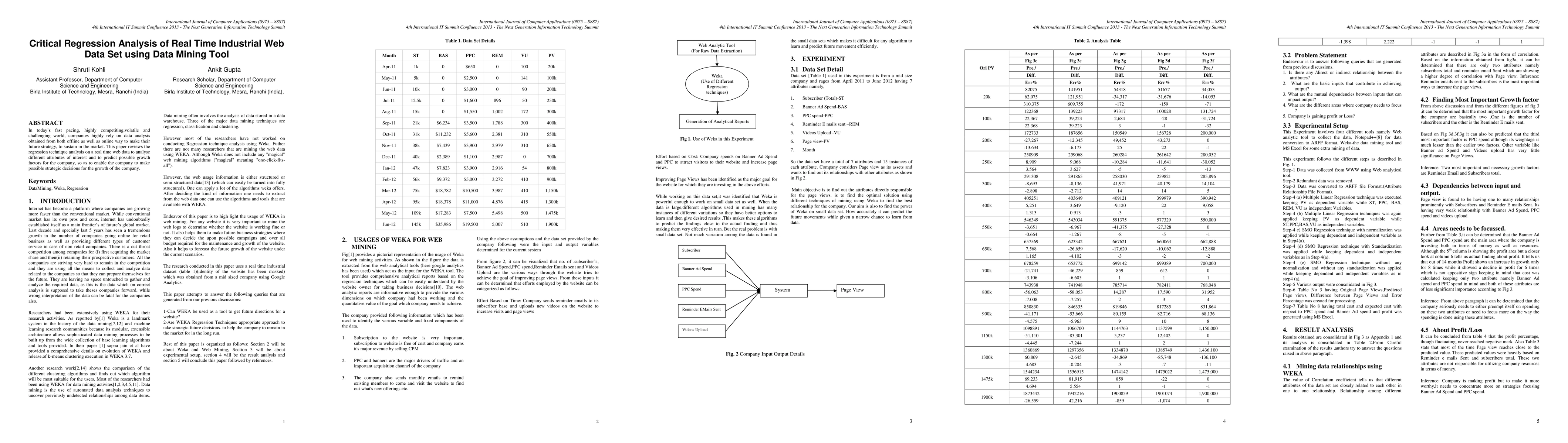 In todays fast pacing, highly competing,volatile and challenging world, companies highly rely on data analysis obtained from both offline as well as online way to make their future strategy, to sustain in the market. This paper reviews the regression technique analysis on a real time web data to analyse different attributes of interest and to predict possible growth factors for the company, so as to enable the company to make possible strategic decisions for the growth of the company.
