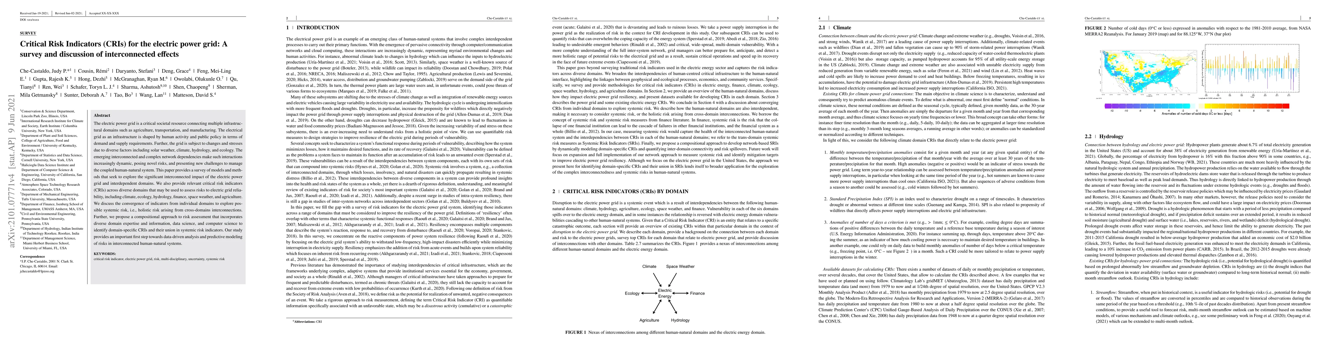 This paper surveys models and methods for understanding the interconnected impacts on the electric power grid, highlighting critical risk indicators (CRIs) from diverse domains like climate, ecology, and finance. It proposes a compositional approach to risk assessment that integrates domain expertise and data science to identify systemic risks arising from cross-domain interconnections.