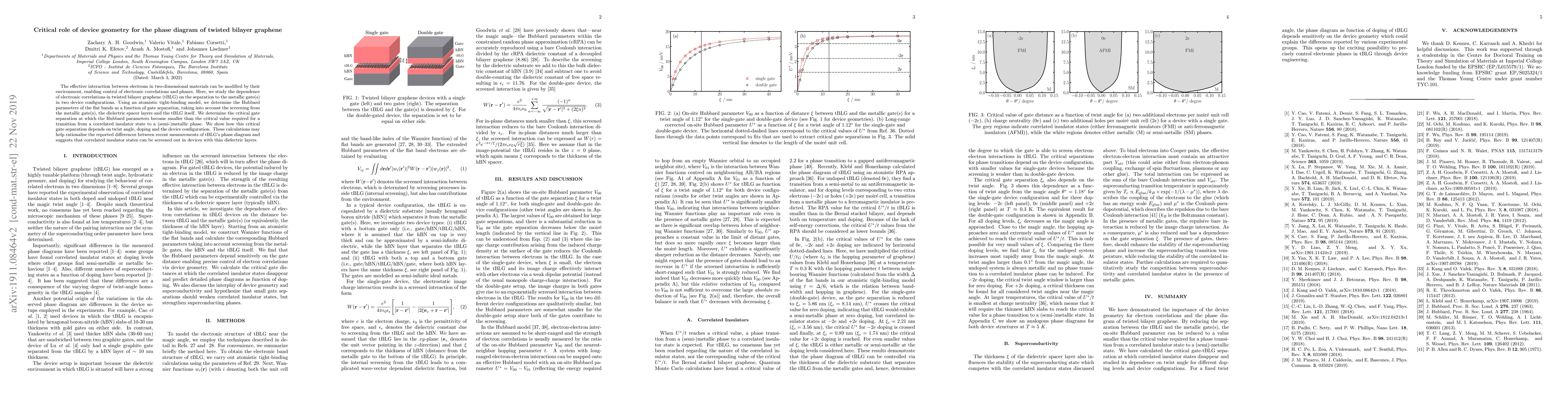 Researchers studied how device geometry affects electronic correlations in twisted bilayer graphene and found that gate separation can control phase transitions between correlated insulator and metallic phases.