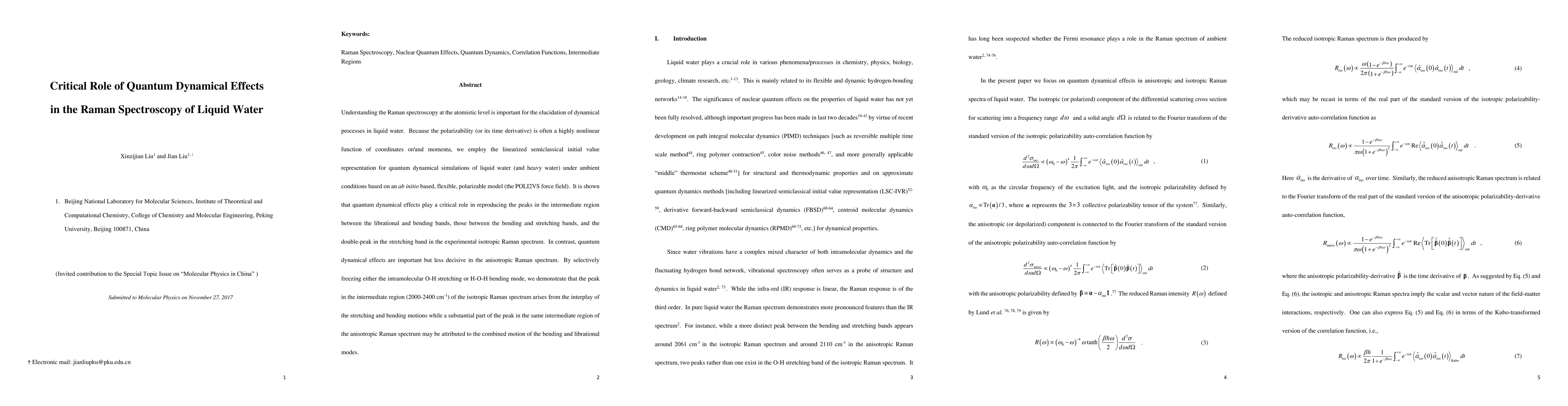 This study reveals that quantum dynamical effects significantly influence the Raman spectroscopy of liquid water, particularly in the intermediate spectral regions, and highlights the interplay between O-H stretching and H-O-H bending motions in these effects. Quantum dynamics are crucial for accurately reproducing experimental Raman spectra, with less decisive but still important roles in anisotropic spectra.