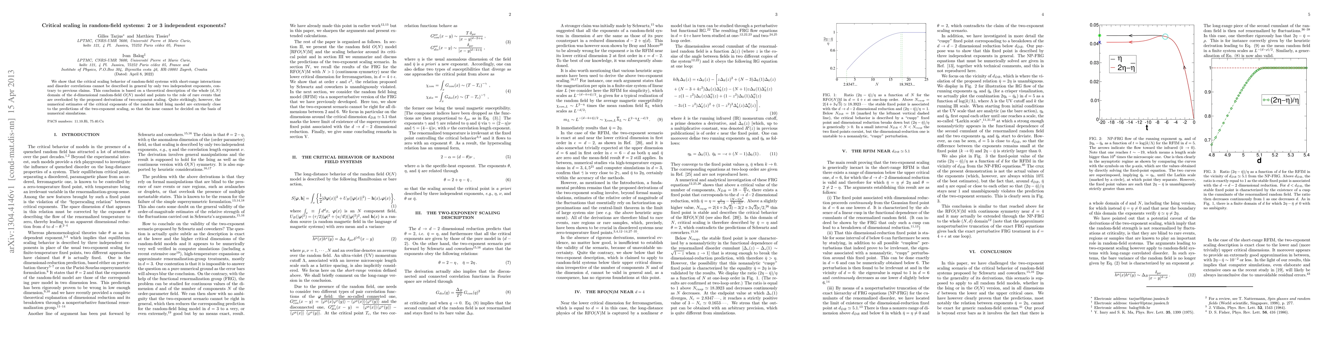 This paper argues that the critical scaling behavior in random-field systems cannot be described by just two independent exponents, challenging previous claims. Despite numerical estimates closely aligning with two-exponent scaling, the theoretical analysis reveals the necessity of considering rare events and additional scaling behavior.
