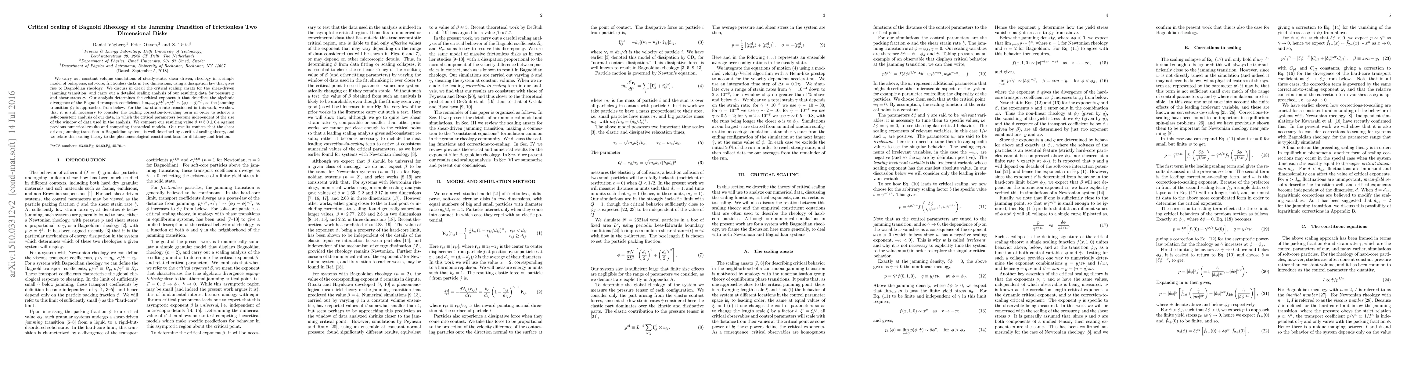 This paper investigates the critical scaling behavior of Bagnold rheology at the jamming transition of frictionless two-dimensional disks using simulations. The study finds that the critical exponent $\beta$ for the divergence of Bagnold transport coefficients is approximately 5.0±0.4, which is larger than previous theoretical predictions but aligns with recent numerical and theoretical results.