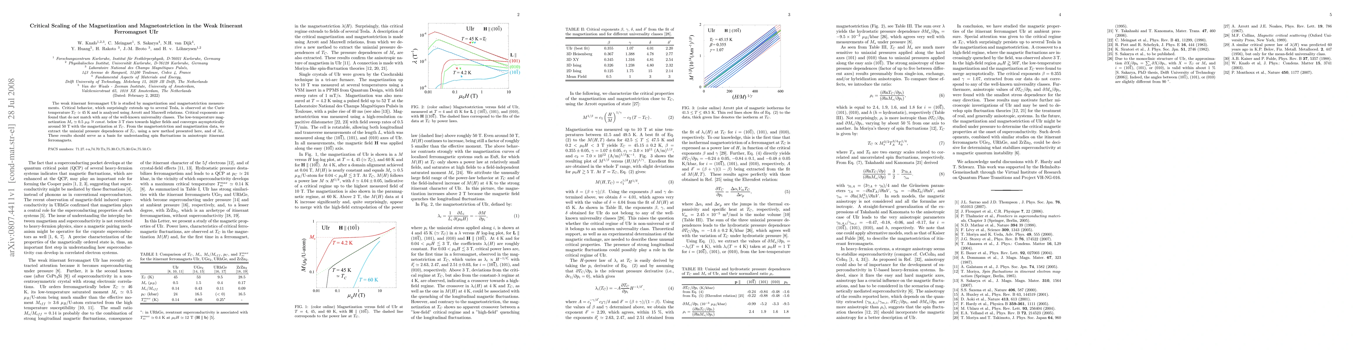 The weak itinerant ferromagnet UIr is studied by magnetization and magnetostriction measurements. Critical behavior, which surprisingly extends up to several Tesla, is observed at the Curie temperature $T_C\simeq45$ K and is analyzed using Arrott and Maxwell relations. Critical exponents are found that do not match with any of the well-known universality classes. The low-temperature magnetization $M_s\simeq0.5$ $\mu_B \cong const.$ below 3 T rises towards higher fields and converges asymptotically around 50 T with the magnetization at $T_C$. From the magnetostriction and magnetization data, we extract the uniaxial pressure dependences of $T_C$, using a new method presented here, and of $M_s$. These results should serve as a basis for understanding spin fluctuations in anisotropic itinerant ferromagnets.