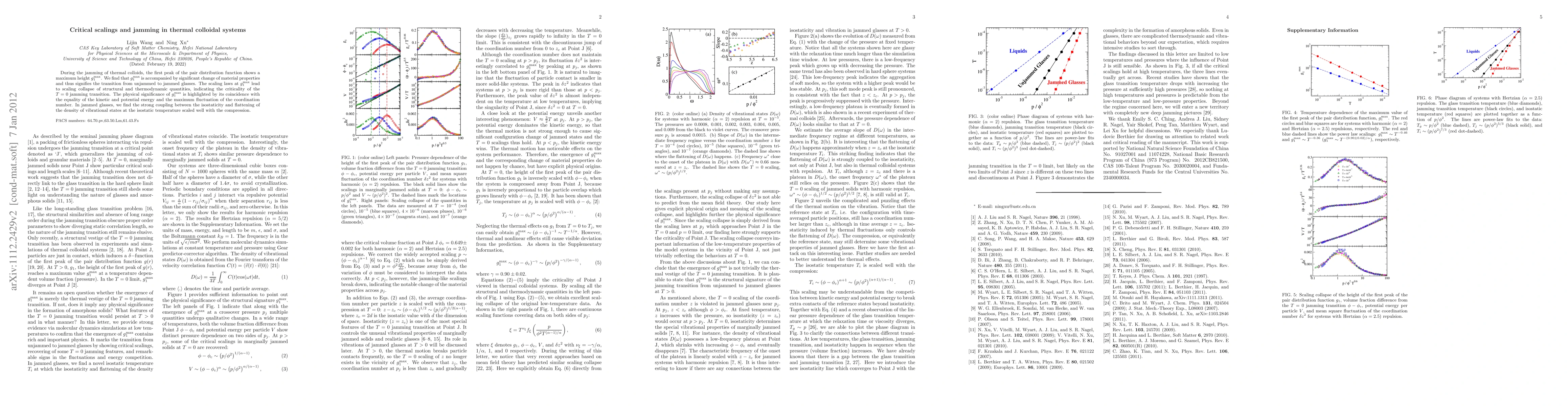 During the jamming of thermal colloids, the first peak of the pair distribution function shows a maximum height $g_1^{\rm max}$. We find that $g_1^{\rm max}$ is accompanied by significant change of material properties and thus signifies the transition from unjammed to jammed glasses. The scaling laws at $g_1^{\rm max}$ lead to scaling collapse of structural and thermodynamic quantities, indicating the criticality of the T=0 jamming transition. The physical significance of $g_1^{\rm max}$ is highlighted by its coincidence with the equality of the kinetic and potential energy and the maximum fluctuation of the coordination number. In jammed glasses, we find the strong coupling between the isostaticity and flattening of the density of vibrational states at the isostatic temperature scaled well with the compression.