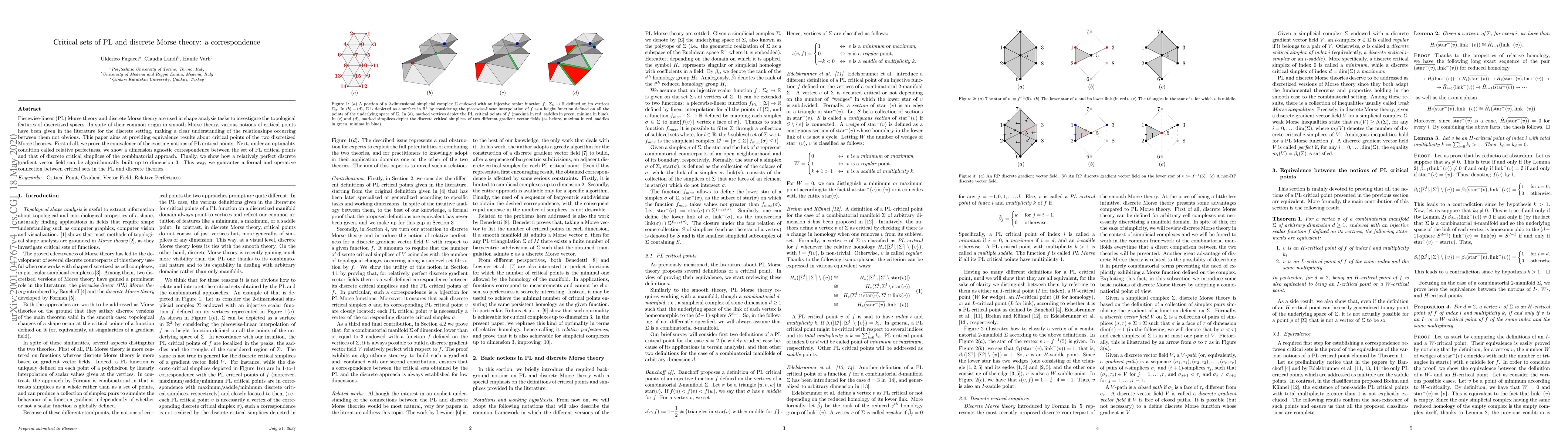 This paper establishes a correspondence between piecewise-linear (PL) and discrete Morse theory, providing equivalence results about critical points and enabling a formal connection between their topological features.