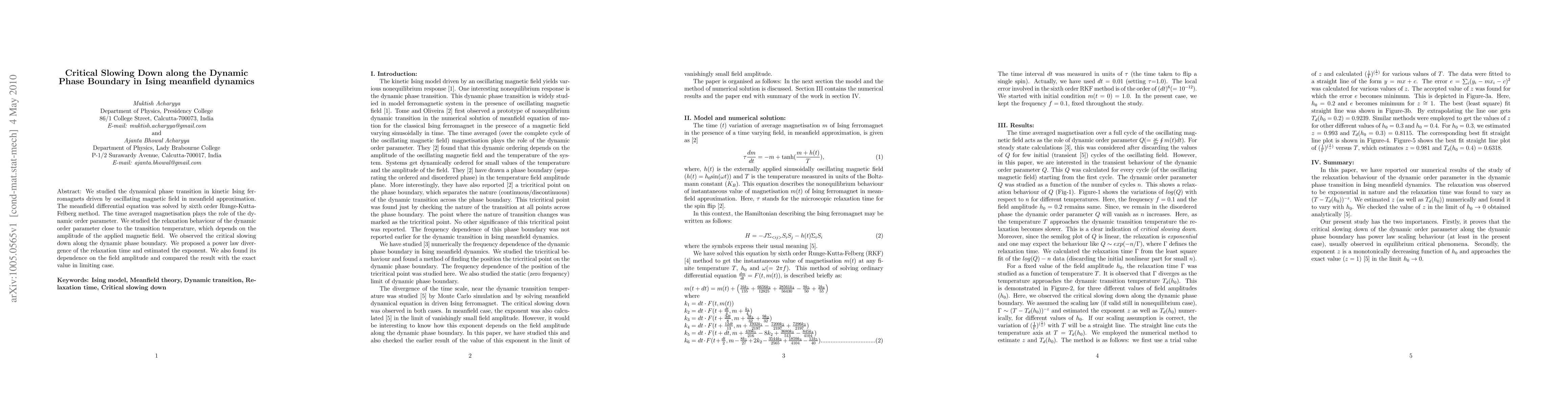 This study investigates the dynamical phase transition in kinetic Ising ferromagnets under oscillating magnetic fields using meanfield approximation. The researchers observed critical slowing down near the transition temperature, proposing a power law for the divergence of relaxation time and estimating its exponent, which depends on the applied magnetic field amplitude.
