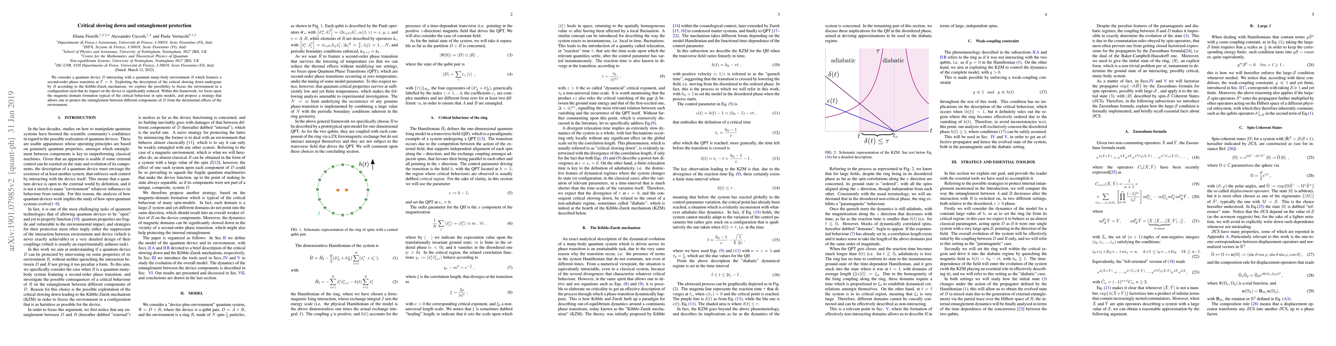 This paper investigates a quantum device interacting with a critical environment, exploring how to mitigate the device's exposure to the environment's critical slowing down. The authors propose a strategy to protect the entanglement within the device by freezing the environment's magnetic-domain formation, leveraging the Kibble-Zurek mechanism.