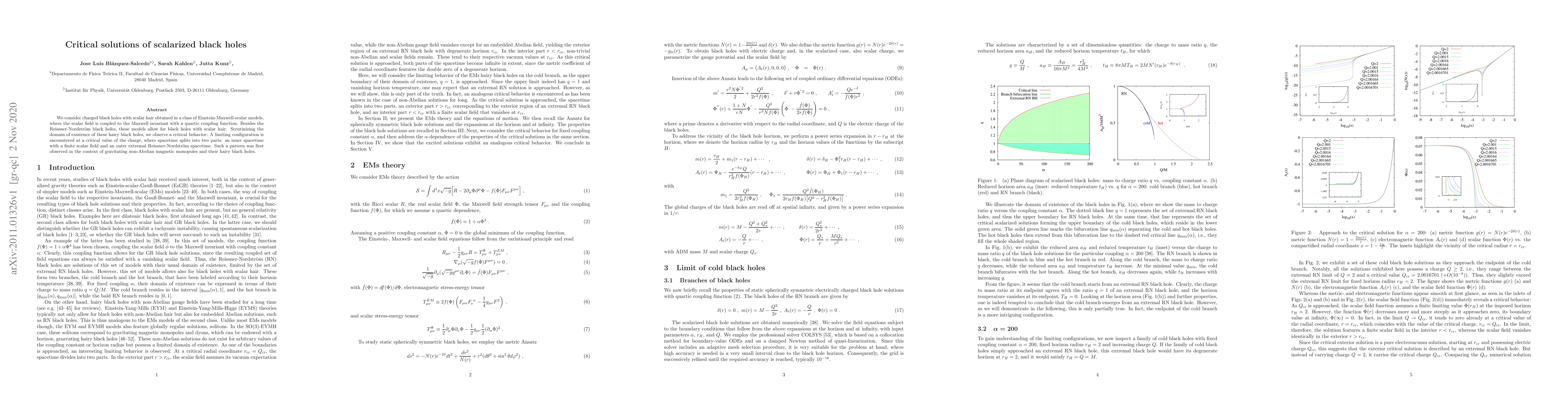We consider charged black holes with scalar hair obtained in a class of Einstein-Maxwell-scalar models, where the scalar field is coupled to the Maxwell invariant with a quartic coupling function. Besides the Reissner-Nordstr\"om black holes, these models allow for black holes with scalar hair. Scrutinizing the domain of existence of these hairy black holes, we observe a critical behavior: A limiting configuration is encountered at a critical value of the charge, where spacetime splits into two parts: an inner spacetime with a finite scalar field and an outer extremal Reissner-Nordstr\"om spacetime. Such a pattern was first observed in the context of gravitating non-Abelian magnetic monopoles and their hairy black holes.