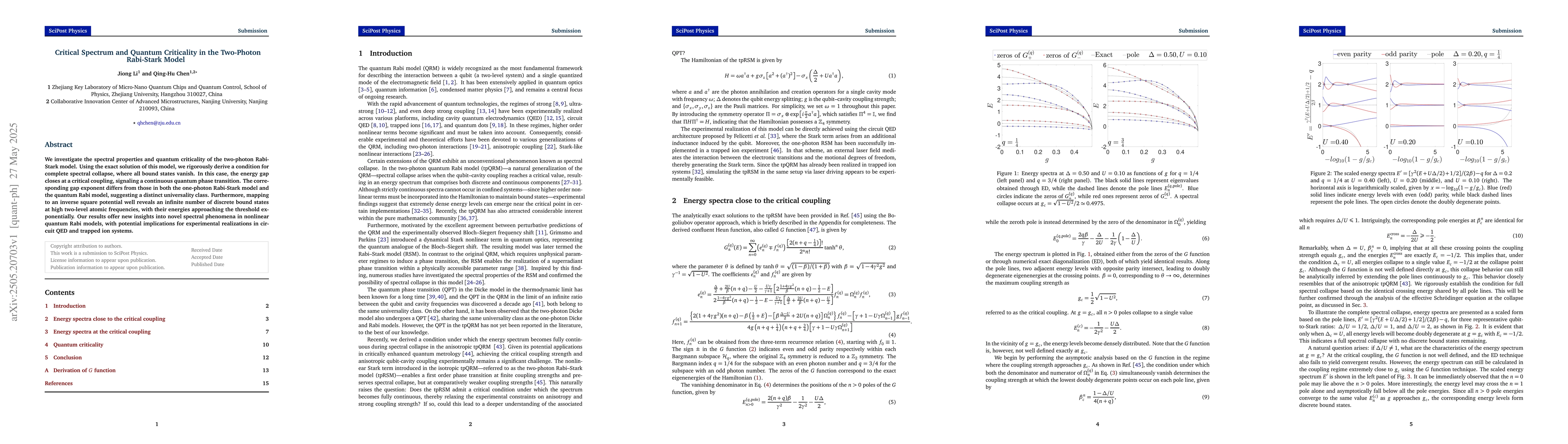 The research utilizes the exact solution of the two-photon Rabi-Stark model to derive conditions for spectral collapse and analyze quantum criticality.