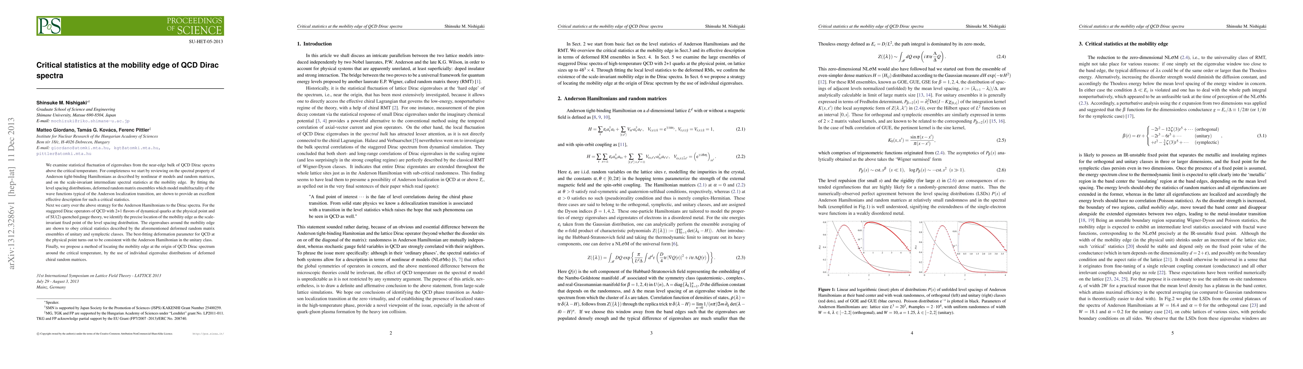 We examine statistical fluctuation of eigenvalues from the near-edge bulk of QCD Dirac spectra above the critical temperature. For completeness we start by reviewing on the spectral property of Anderson tight-binding Hamiltonians as described by nonlinear sigma models and random matrices, and on the scale-invariant intermediate spectral statistics at the mobility edge. By fitting the level spacing distributions, deformed random matrix ensembles which model multifractality of the wave functions typical of the Anderson localization transition, are shown to provide an excellent effective description for such a critical statistics. Next we carry over the above strategy for the Anderson Hamiltonians to the Dirac spectra. For the staggered Dirac operators of QCD with 2+1 flavors of dynamical quarks at the physical point and of SU(2) quenched gauge theory, we identify the precise location of the mobility edge as the scale-invariant fixed point of the level spacing distribution. The eigenvalues around the mobility edge are shown to obey critical statistics described by the aforementioned deformed random matrix ensembles of unitary and symplectic classes. The best-fitting deformation parameter for QCD at the physical point turns out to be consistent with the Anderson Hamiltonian in the unitary class. Finally, we propose a method of locating the mobility edge at the origin of QCD Dirac spectrum around the critical temperature, by the use of individual eigenvalue distributions of deformed chiral random matrices.