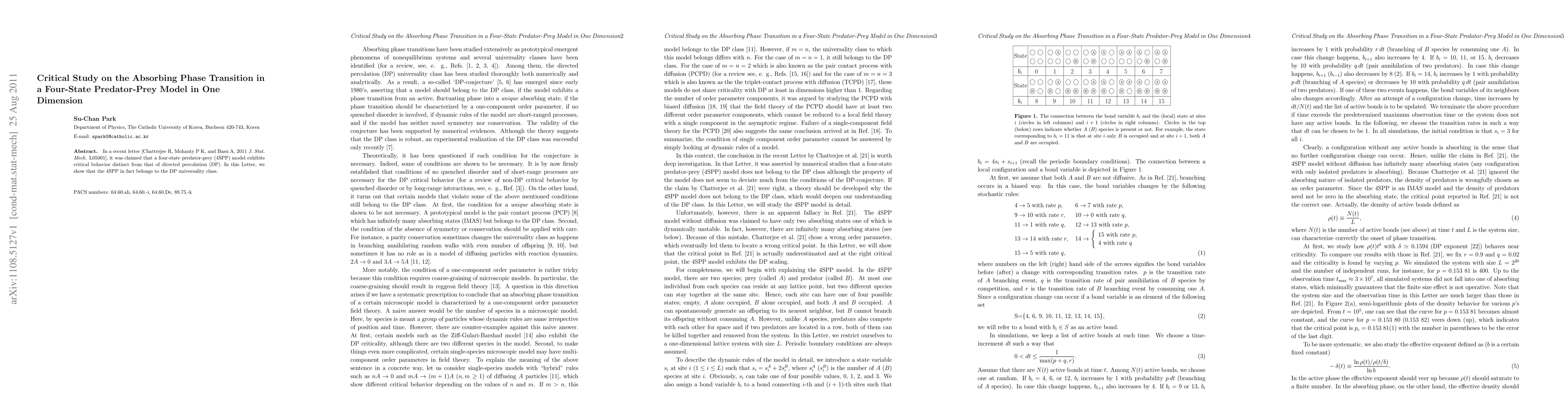 This study investigates the absorbing phase transition in a four-state predator-prey model, revealing that contrary to previous claims, it actually exhibits critical behavior consistent with the directed percolation universality class rather than distinct critical dynamics.