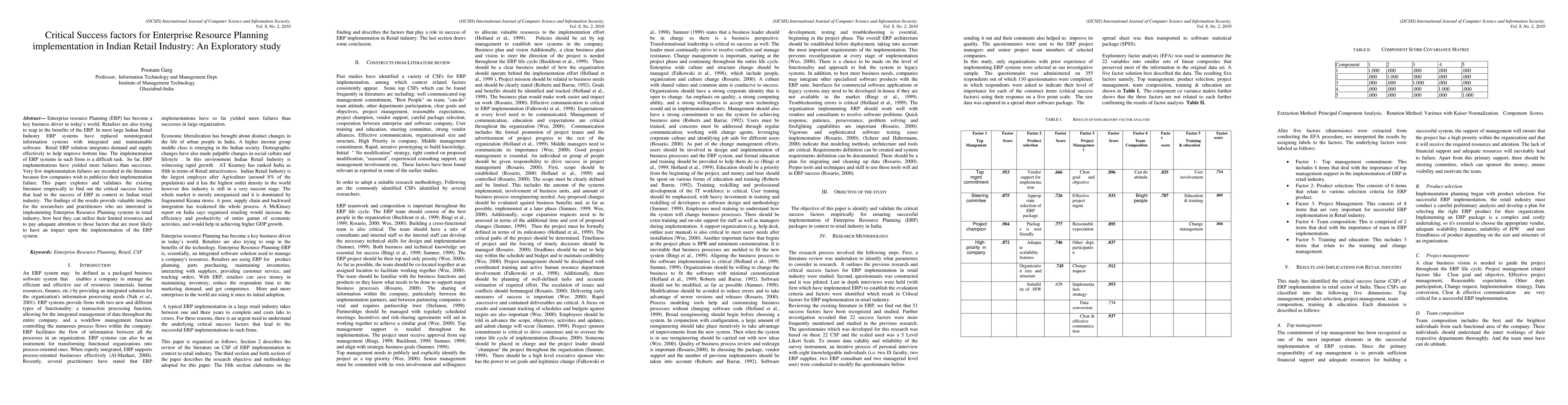 This study identifies critical success factors for ERP implementation in the Indian retail industry, emphasizing the importance of integrating demand and supply to improve business outcomes. It provides valuable insights for practitioners on optimizing resource allocation and focusing on key factors to enhance ERP success rates.