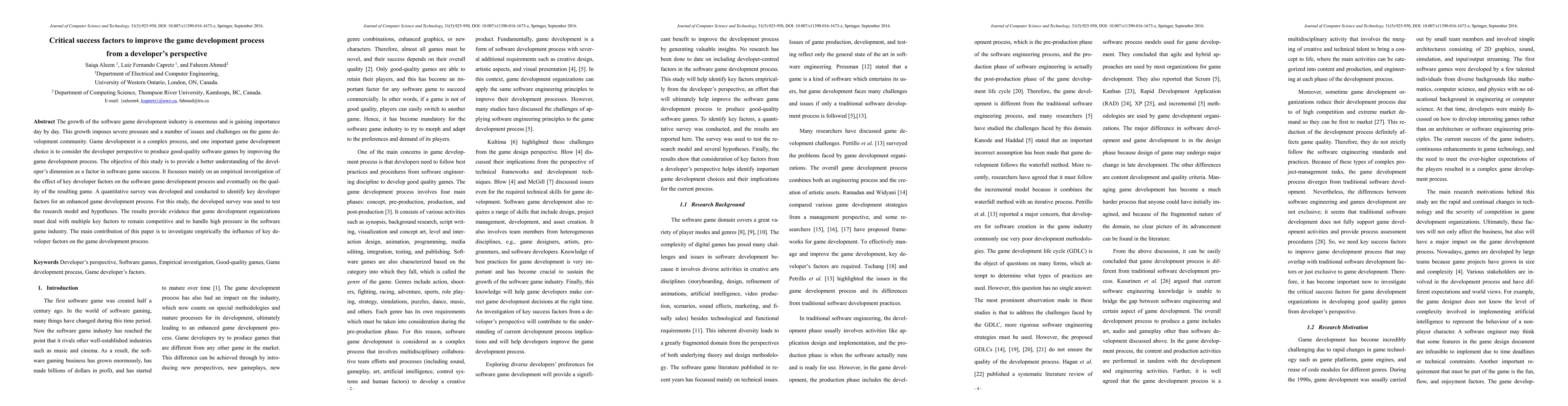 This study empirically investigates key developer factors impacting game development processes, revealing multiple critical factors for enhancing game quality and organizational competitiveness in the high-pressure software game industry.