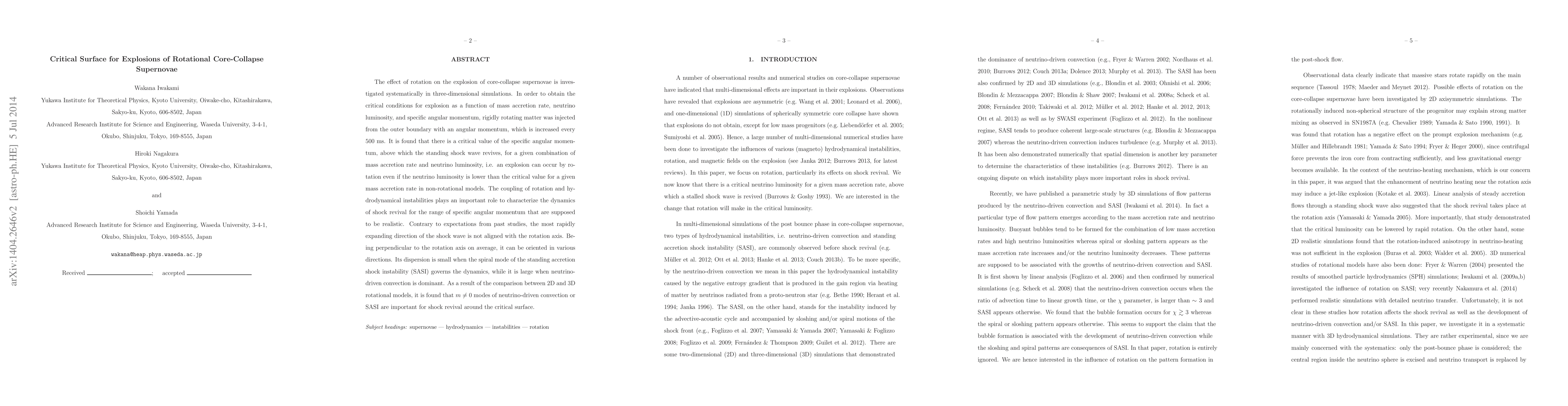 Researchers found that rotation can trigger explosions in core-collapse supernovae even if neutrino luminosity is low, and the most rapidly expanding direction of the shock wave is not aligned with the rotation axis.