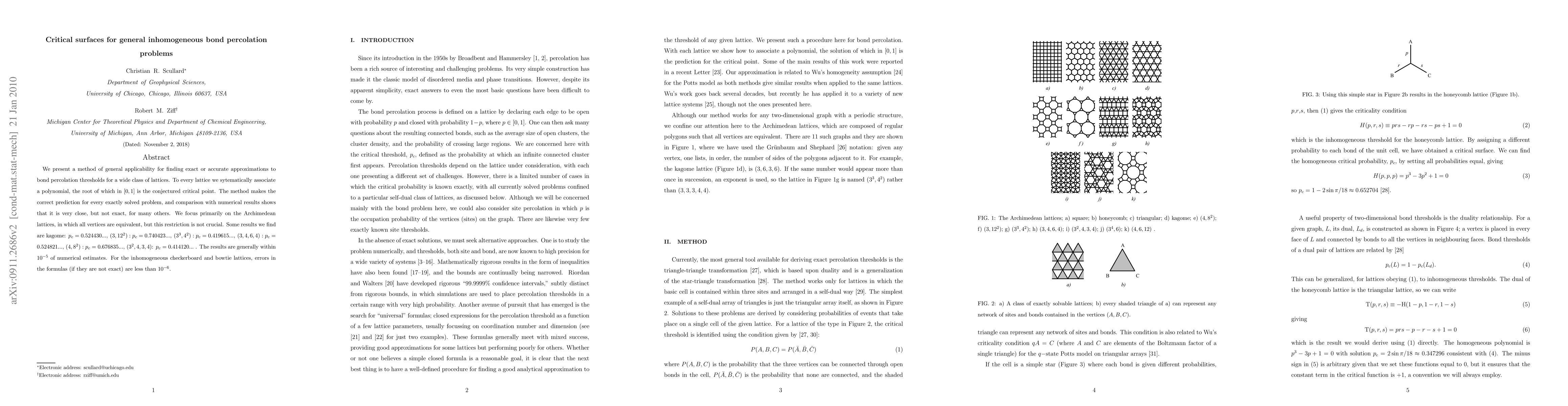 We present a method of general applicability for finding exact or accurate approximations to bond percolation thresholds for a wide class of lattices. To every lattice we sytematically associate a polynomial, the root of which in $[0,1]$ is the conjectured critical point. The method makes the correct prediction for every exactly solved problem, and comparison with numerical results shows that it is very close, but not exact, for many others. We focus primarily on the Archimedean lattices, in which all vertices are equivalent, but this restriction is not crucial. Some results we find are kagome: $p_c=0.524430...$, $(3,12^2): p_c=0.740423...$, $(3^3,4^2): p_c=0.419615...$, $(3,4,6,4):p_c=0.524821...$, $(4,8^2):p_c=0.676835...$, $(3^2,4,3,4)$: $p_c=0.414120...$ . The results are generally within $10^{-5}$ of numerical estimates. For the inhomogeneous checkerboard and bowtie lattices, errors in the formulas (if they are not exact) are less than $10^{-6}$.