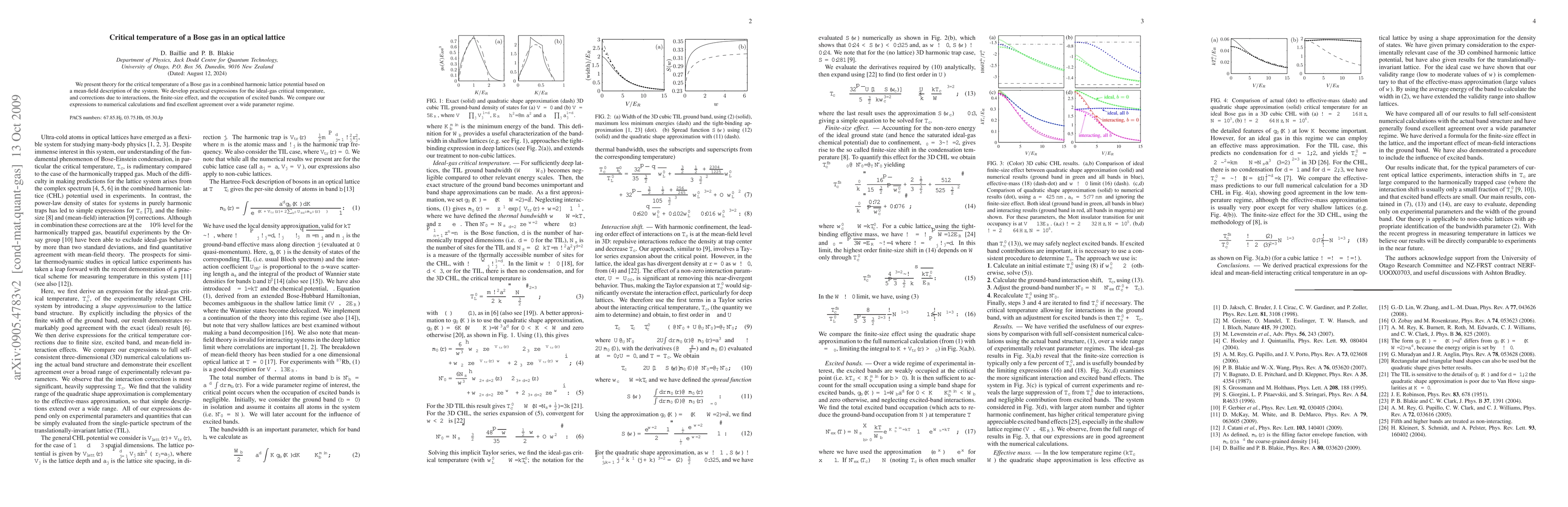 This paper develops a theoretical framework to determine the critical temperature of a Bose gas in an optical lattice, incorporating mean-field approximations and corrections for interactions, finite-size effects, and excited band occupations. The derived expressions are validated against numerical calculations, showing strong agreement across various parameters.