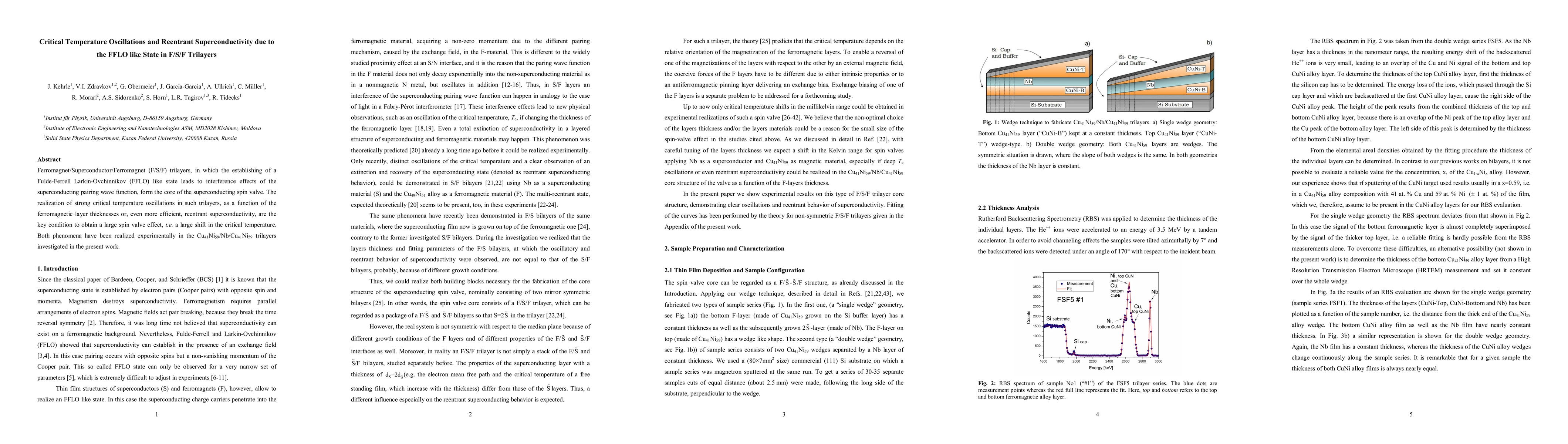This paper investigates the critical temperature oscillations and reentrant superconductivity in F/S/F trilayers due to a FFLO-like state, demonstrating strong effects in Cu 41 Ni 59 /Nb/Cu 41 Ni 59 trilayers that enhance the spin valve effect. Experimental results confirm the occurrence of these phenomena, which are crucial for achieving significant shifts in the critical temperature.