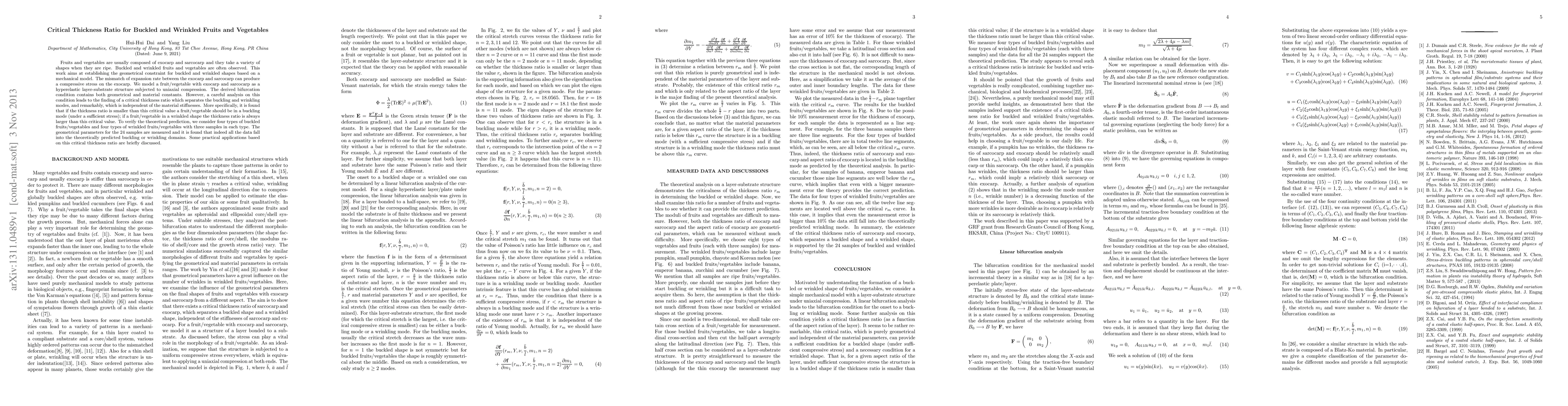 This paper investigates the geometrical constraint for buckled and wrinkled shapes in fruits and vegetables, establishing a critical thickness ratio that determines whether a fruit/vegetable will buckle or wrinkle based on the mismatch of expansion rates between its layers. Experimental verification with various samples confirms the theoretical prediction, highlighting practical applications of this critical ratio.