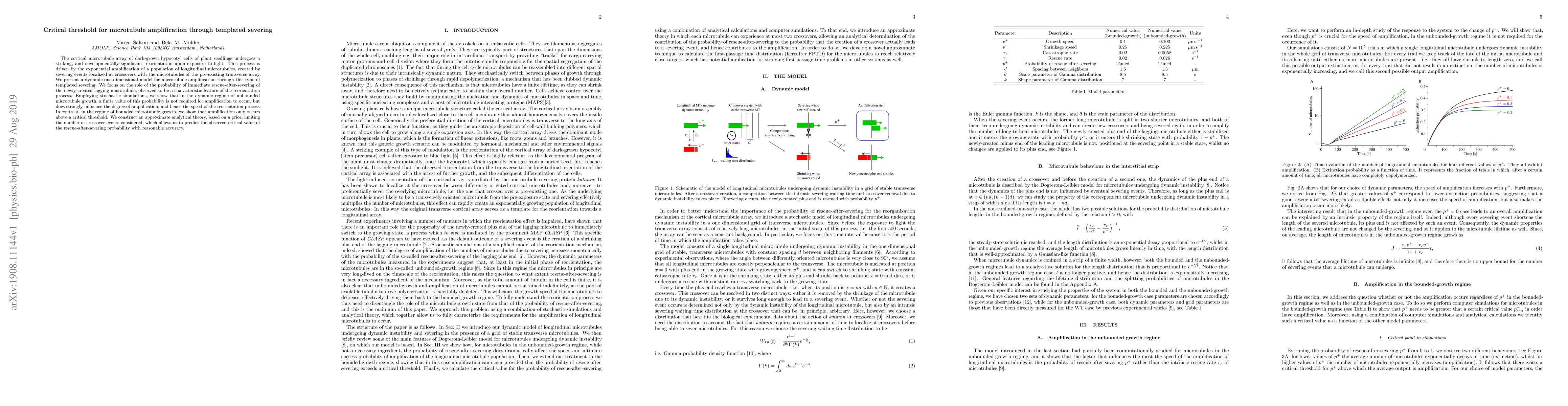 This paper investigates the critical threshold for microtubule amplification through templated severing in plant cells, demonstrating that unbounded microtubule growth does not require a high probability of immediate rescue-after-severing, but bounded growth necessitates a critical threshold probability for amplification. Analytical and simulation models reveal the influence of this probability on the speed of microtubule reorientation.