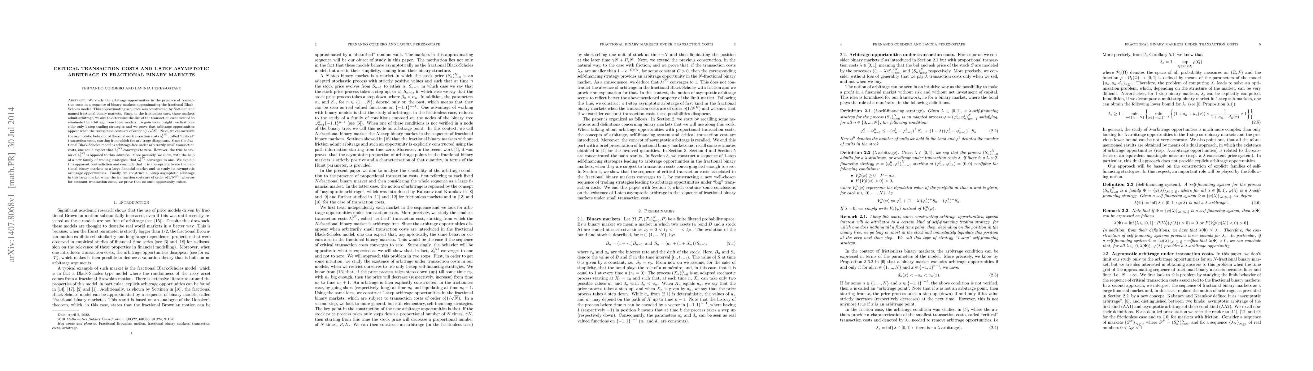 This paper investigates arbitrage opportunities in fractional binary markets with transaction costs, showing that 1-step trading strategies reveal arbitrage when costs are $o(1/\sqrt{N})$. It finds that the critical transaction costs, $\lambda_c^{(N)}$, converge to 1, contrary to the expectation that they would approach zero, indicating a need for a new perspective on large financial markets.