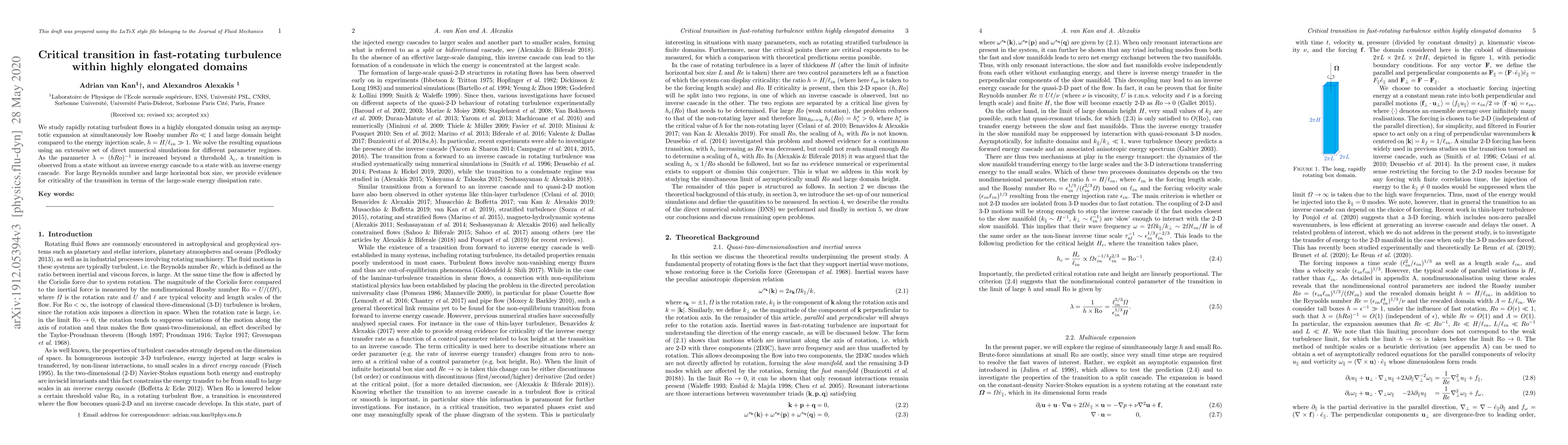 This paper investigates rapidly rotating turbulent flows in elongated domains, revealing a critical transition from a state without to one with an inverse energy cascade as a parameter increases beyond a threshold. The study provides evidence for the criticality of this transition in terms of the large-scale energy dissipation rate.