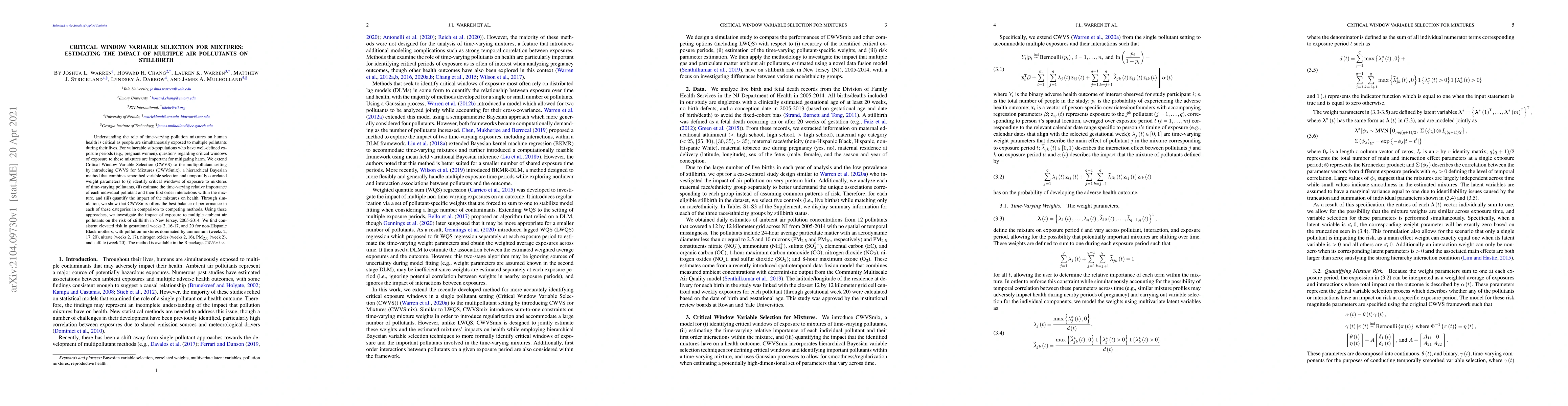 A study used a new method to analyze how exposure to multiple air pollutants affects stillbirth risk, finding elevated risks in specific weeks of pregnancy for certain groups.