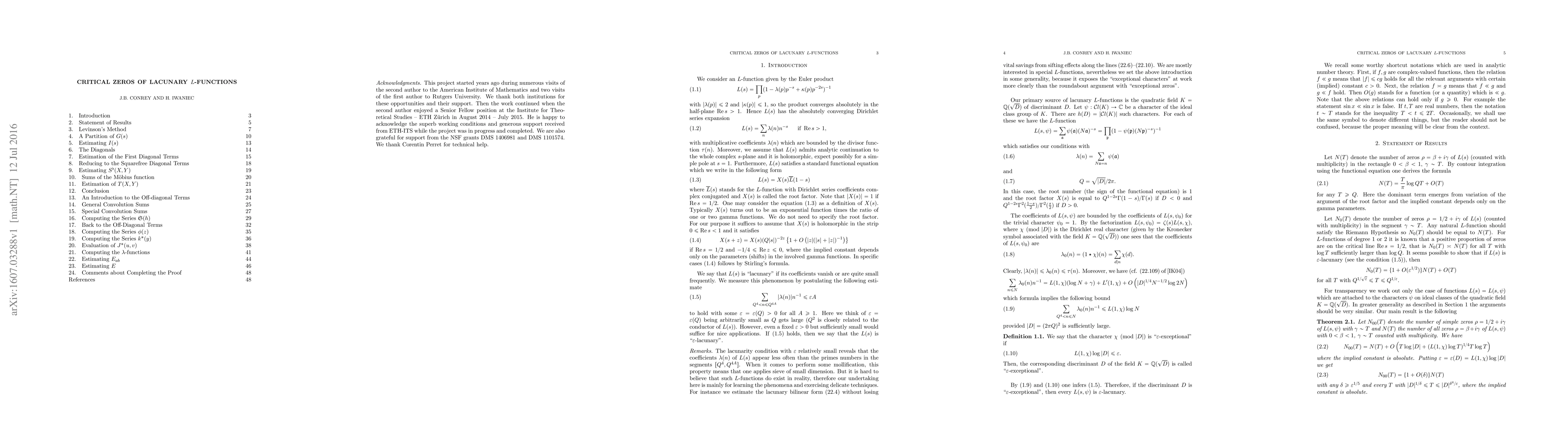 Assuming the existence of a sequence of exceptional discriminants of quadratic fields, we show that a hundred percent of zeros of the Riemann zeta function are on the critical line in specific segments. This is a special case of a more general statement for lacunary $L$-functions.