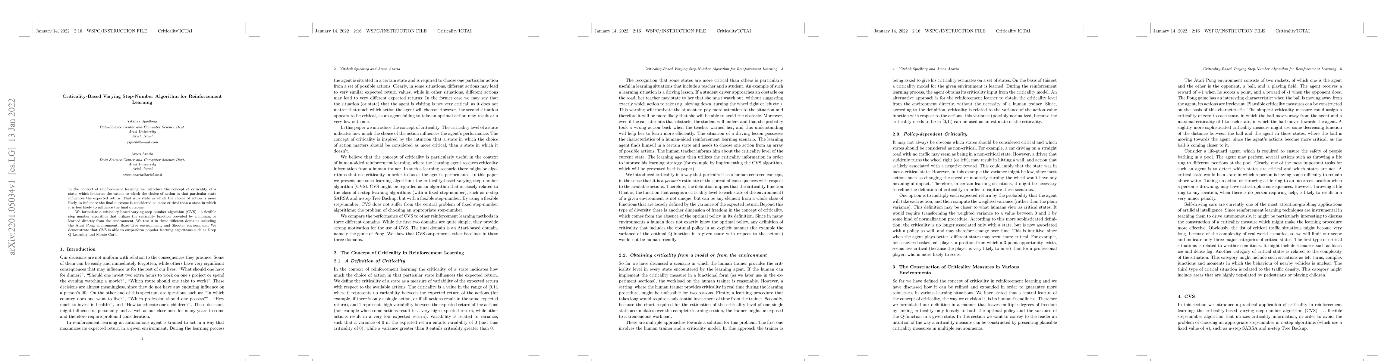 In the context of reinforcement learning we introduce the concept of criticality of a state, which indicates the extent to which the choice of action in that particular state influences the expected return. That is, a state in which the choice of action is more likely to influence the final outcome is considered as more critical than a state in which it is less likely to influence the final outcome. We formulate a criticality-based varying step number algorithm (CVS) - a flexible step number algorithm that utilizes the criticality function provided by a human, or learned directly from the environment. We test it in three different domains including the Atari Pong environment, Road-Tree environment, and Shooter environment. We demonstrate that CVS is able to outperform popular learning algorithms such as Deep Q-Learning and Monte Carlo.