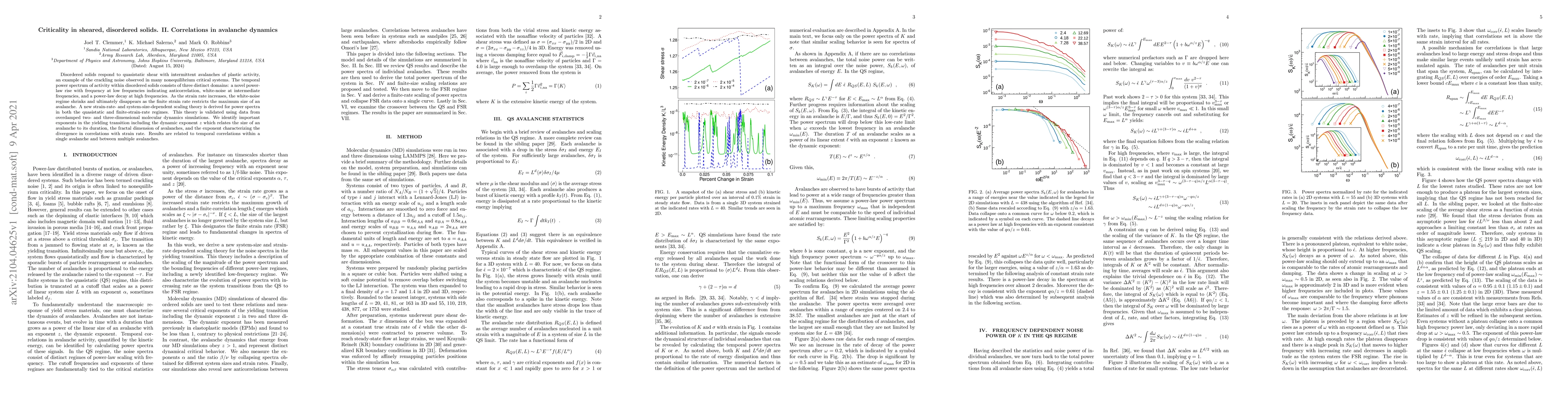 This paper explores the dynamics of avalanches in sheared, disordered solids, revealing a three-domain temporal power spectrum. A new scaling theory is developed to describe the power spectra under different strain rates, validated by molecular dynamics simulations, and identifies key exponents characterizing the yielding transition.