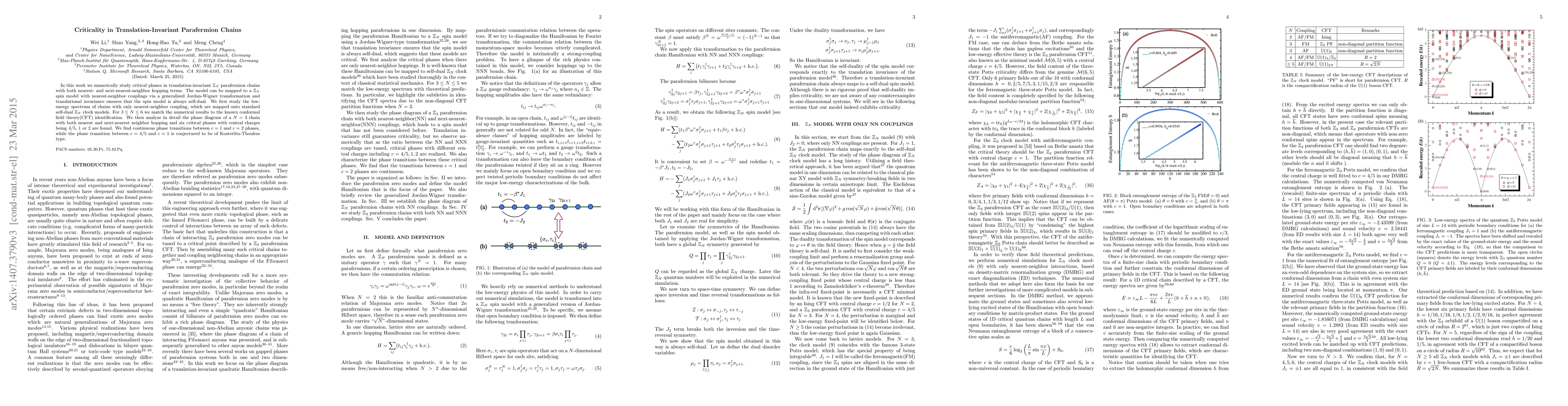 This paper numerically investigates critical phases in translation-invariant $\mathbb{Z}_N$ parafermion chains, revealing six critical phases with central charges of $4/5$, 1, or 2. The study finds continuous transitions between $c=1$ and $c=2$ phases, while the $c=4/5$ to $c=1$ transition is hypothesized to be of Kosterlitz-Thouless type.