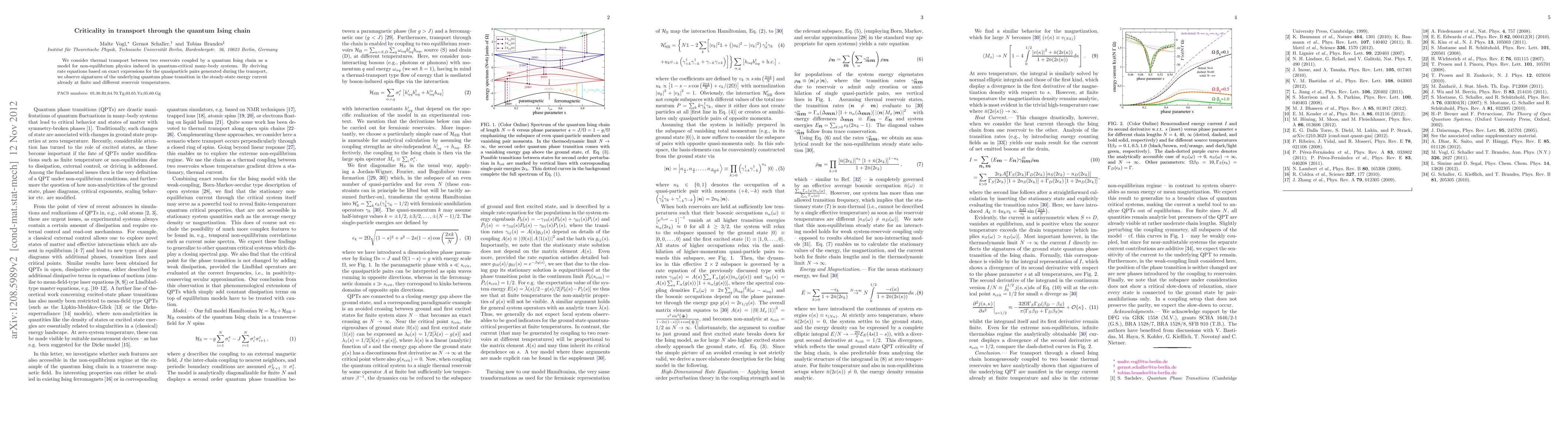 This paper investigates thermal transport in a quantum Ising chain connecting two reservoirs, revealing signatures of quantum phase transitions in the steady-state energy current through exact rate equations for quasiparticle pairs, even at finite temperatures.