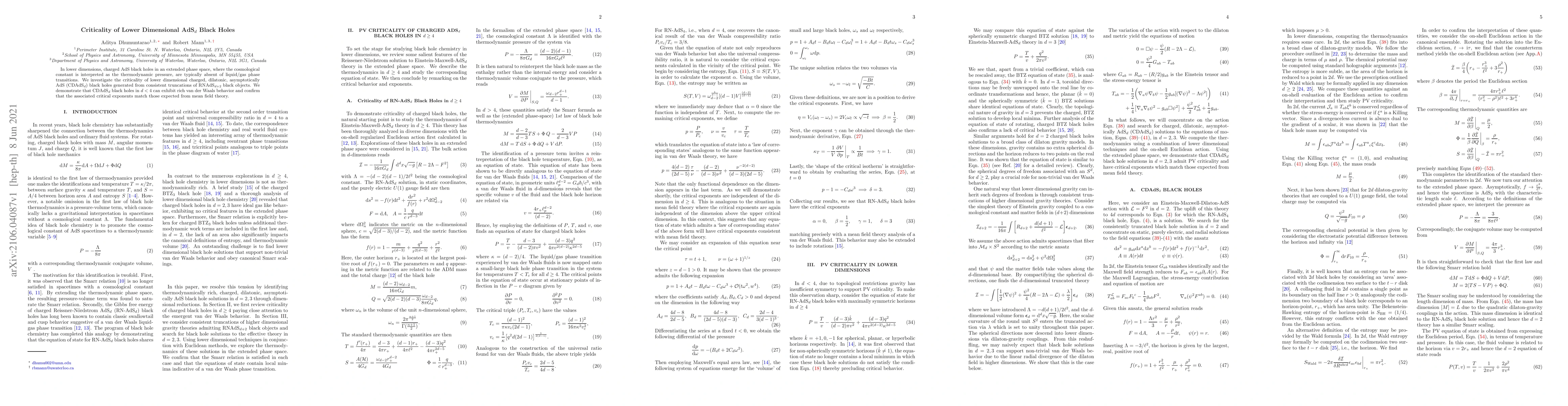 In lower dimensions, charged AdS black holes in an extended phase space, where the cosmological constant is interpreted as the thermodynamic pressure, are typically absent of liquid/gas phase transitions. We investigate the criticality of lower dimensional charged, dilatonic, asymptotically AdS (CDAdS$_d$) black holes generated from consistent truncations of RNAdS$_{d+2}$ black objects. We demonstrate that CDAdS$_{d}$ black holes in $d<4$ can exhibit rich van der Waals behavior and confirm that the associated critical exponents match those expected from mean field theory.